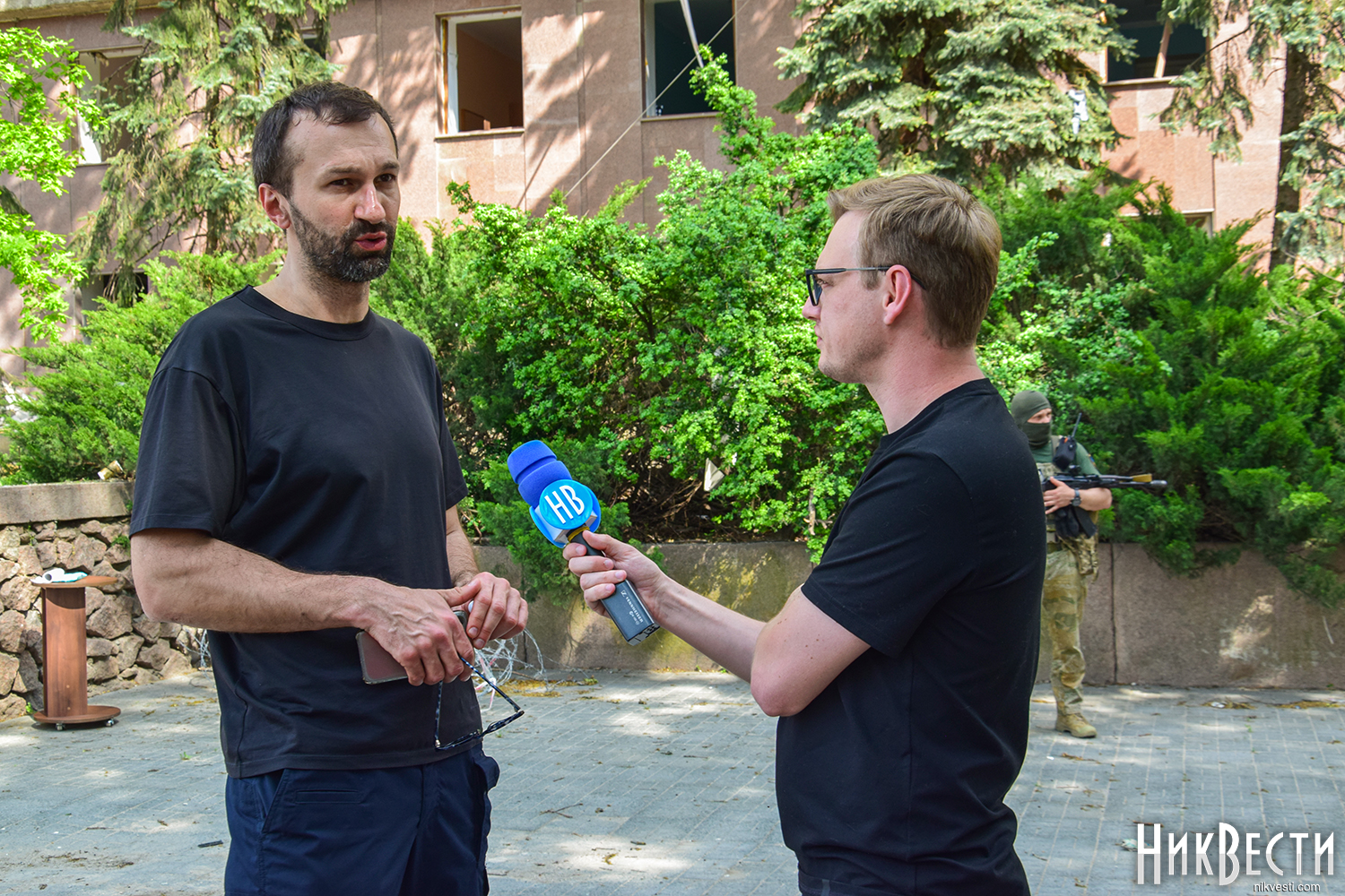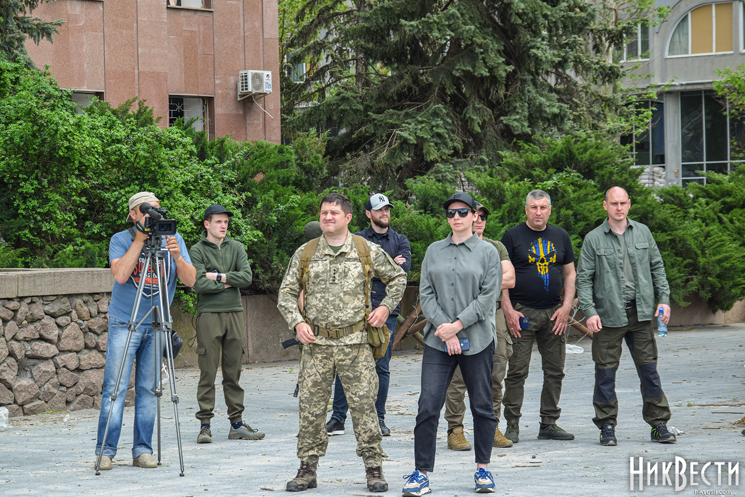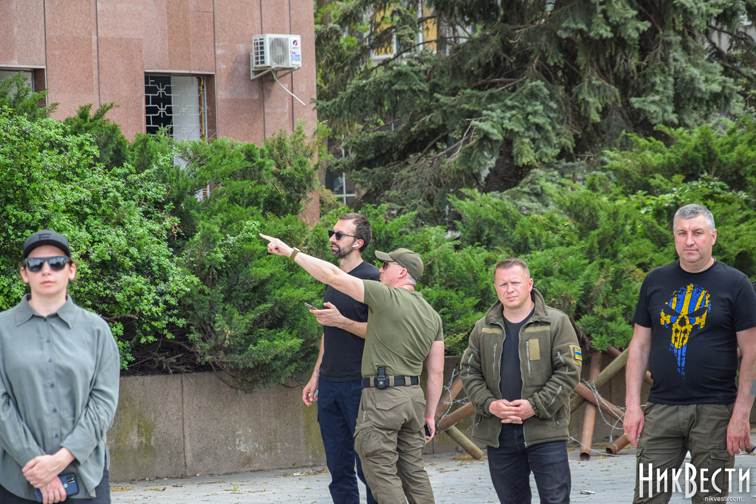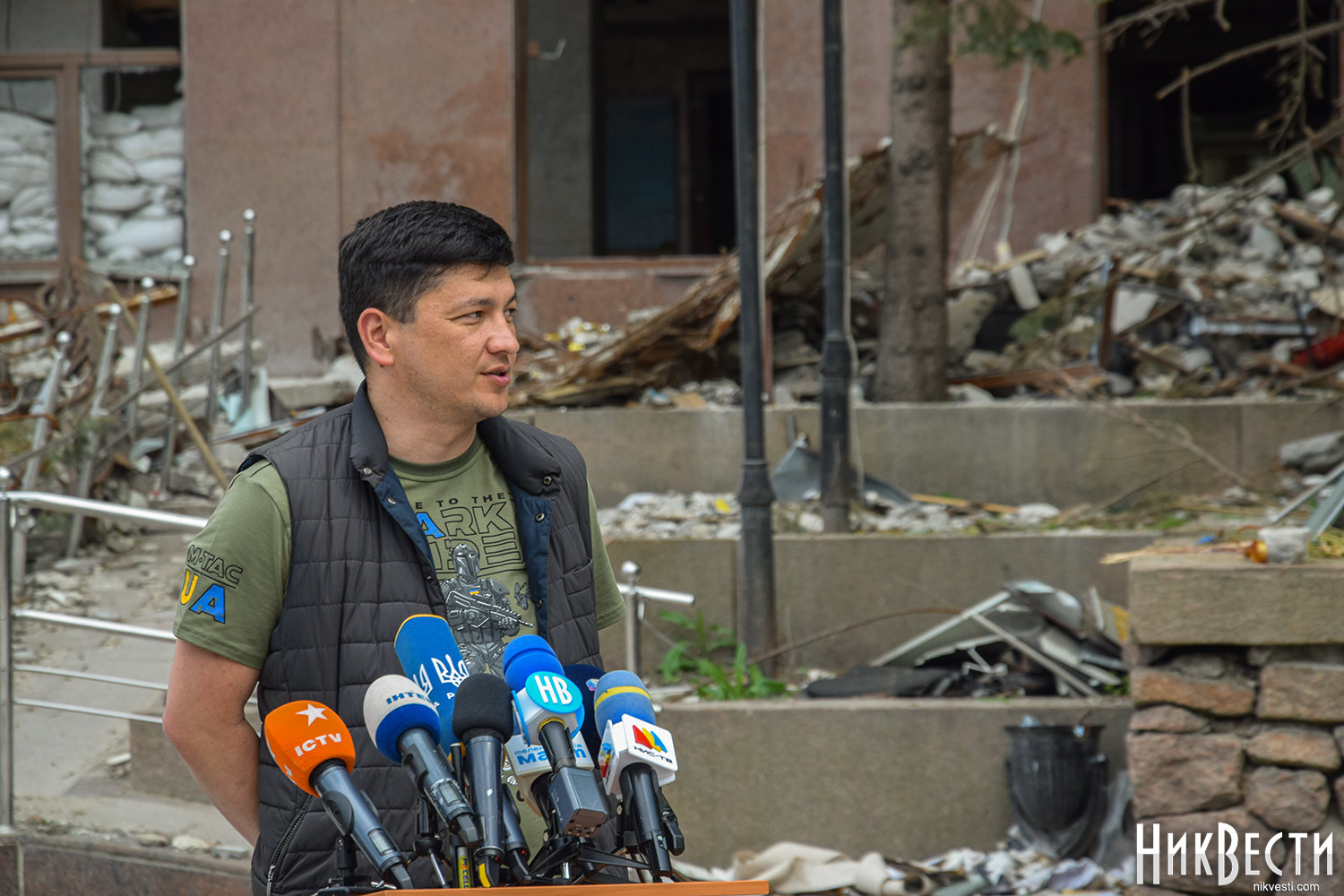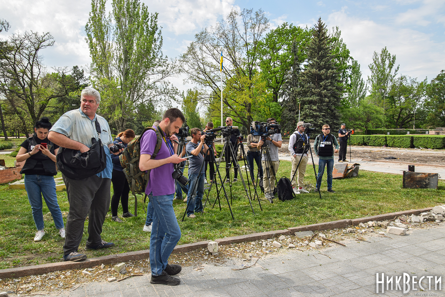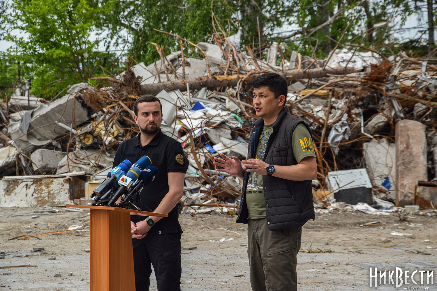 У здания разрушенной Николаевской ОГА вместе с военным губернатором Виталием Кимом они дали пресс-конференцию для журналистов Николаева, сообщают НикВести.
