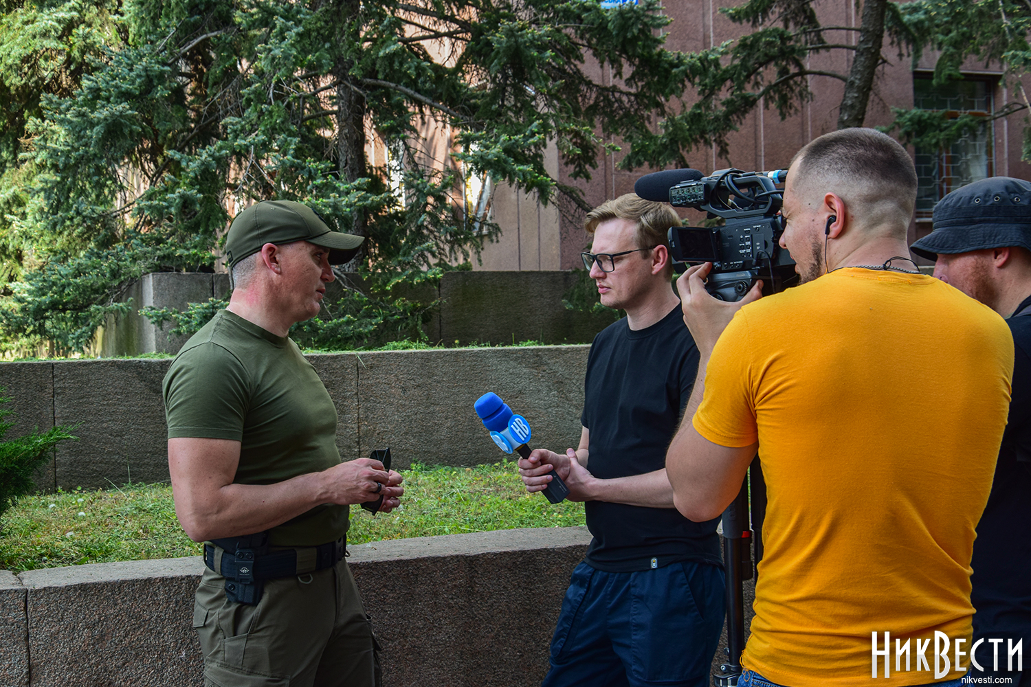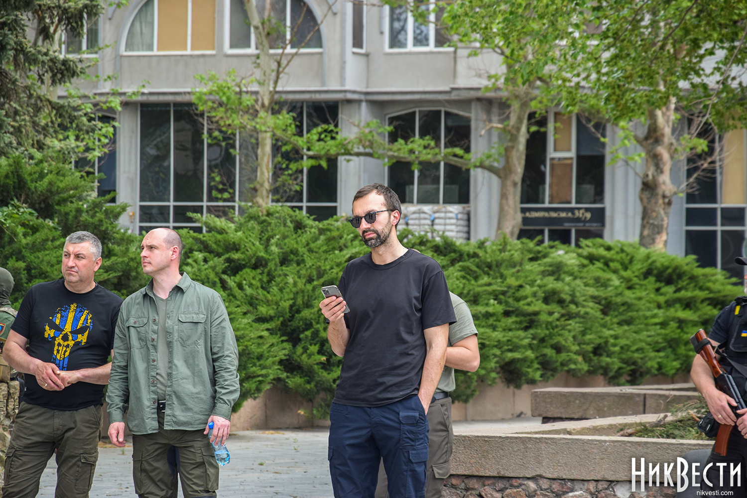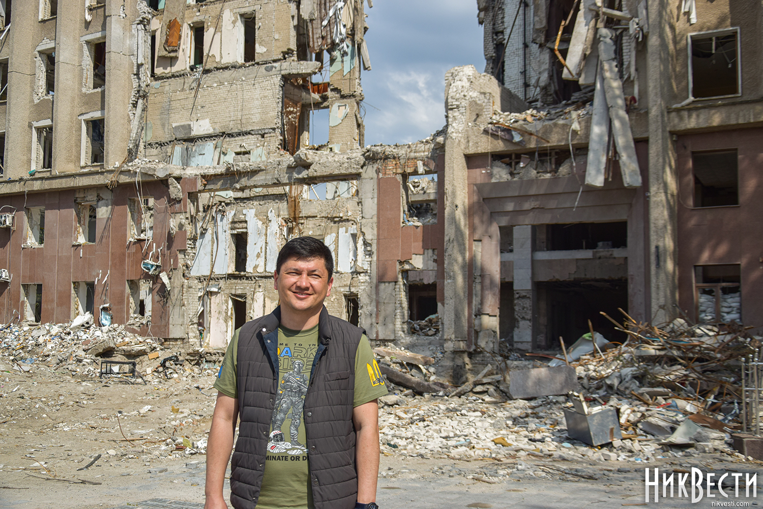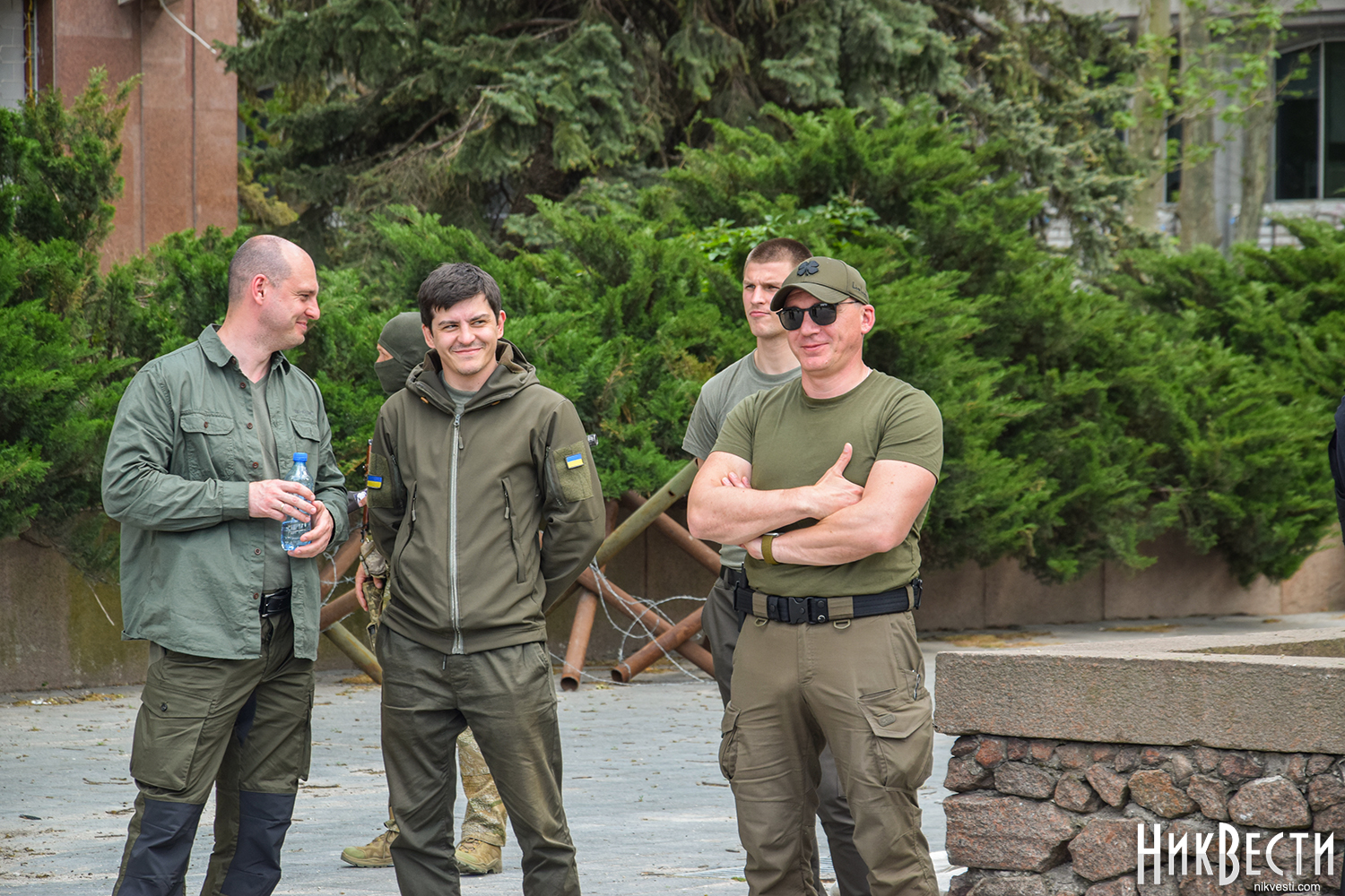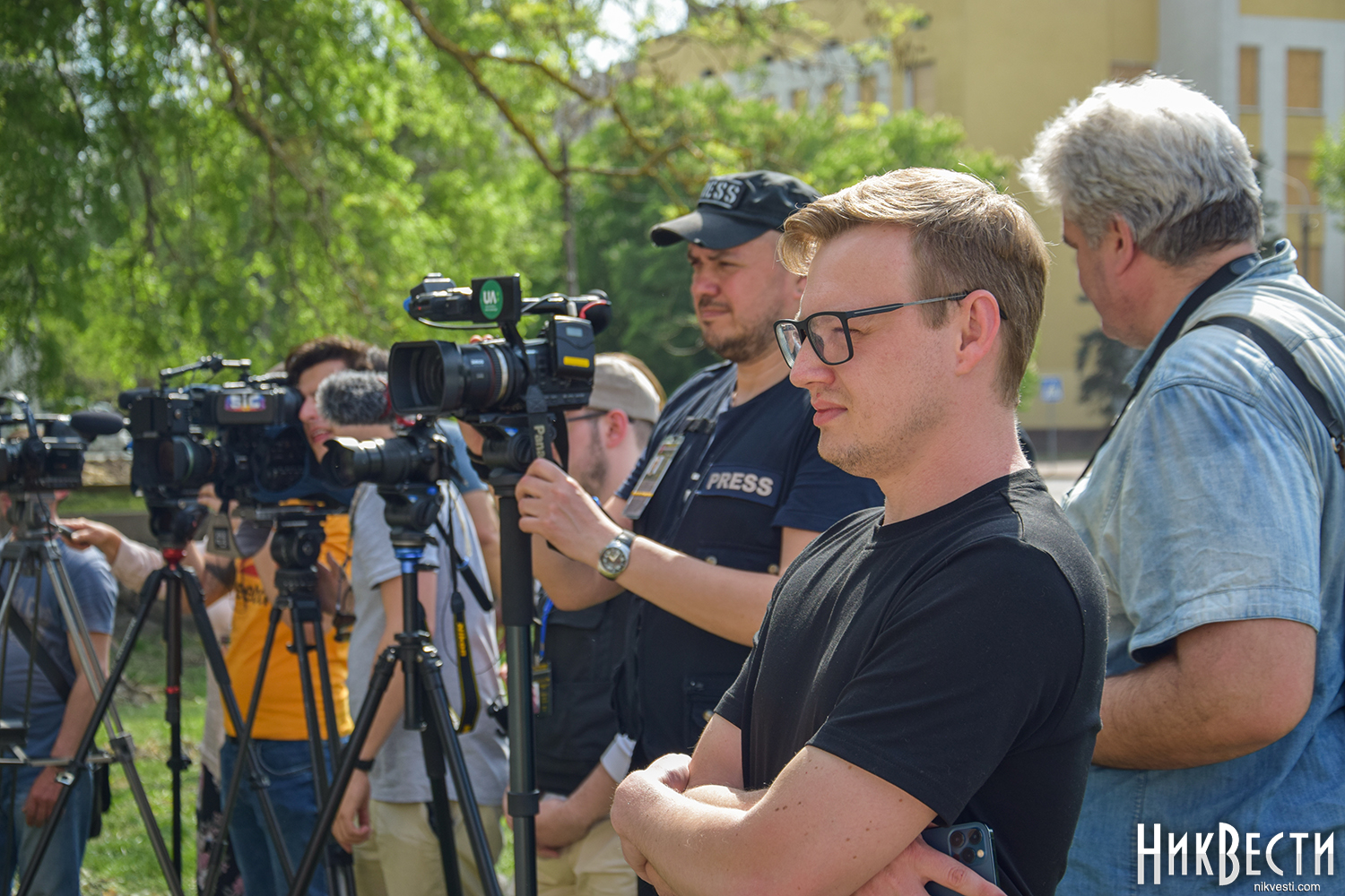 У здания разрушенной Николаевской ОГА вместе с военным губернатором Виталием Кимом они дали пресс-конференцию для журналистов Николаева, сообщают НикВести.