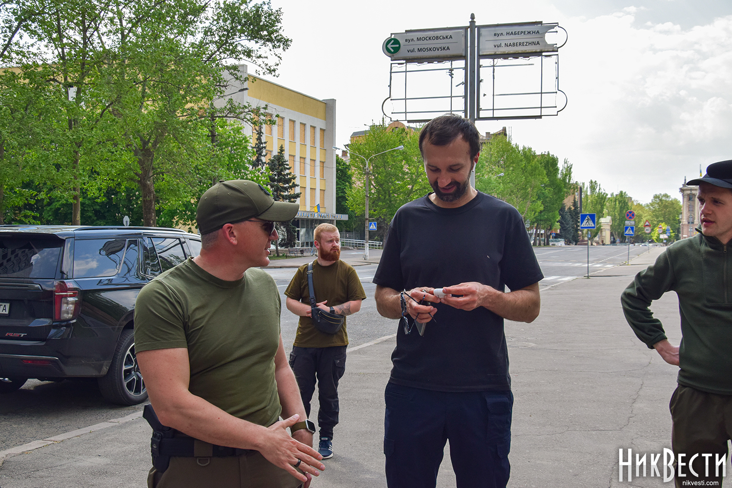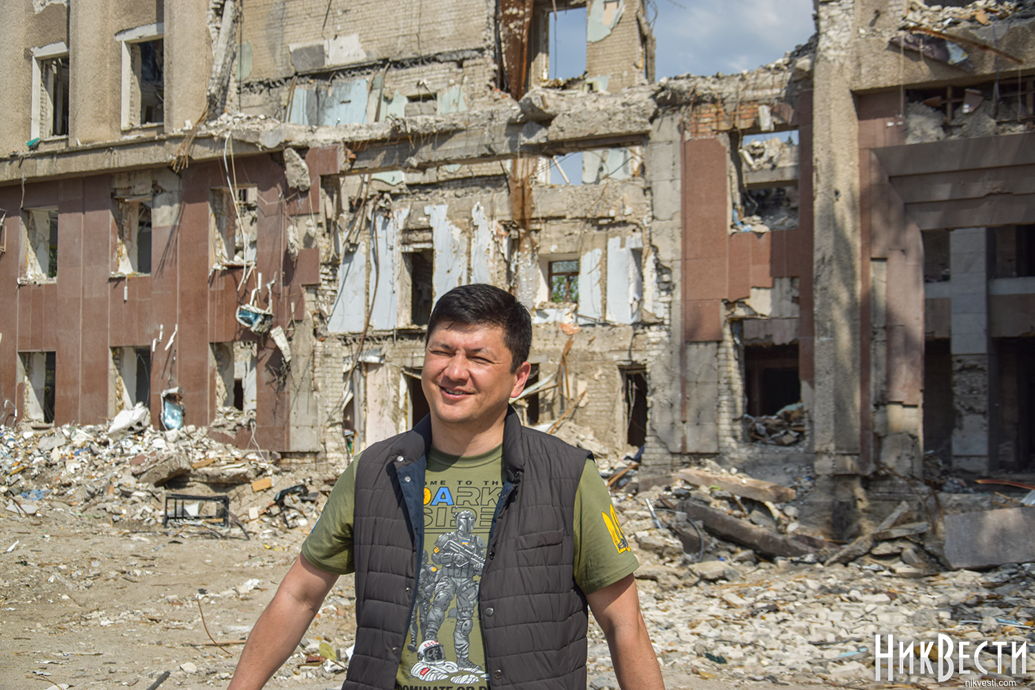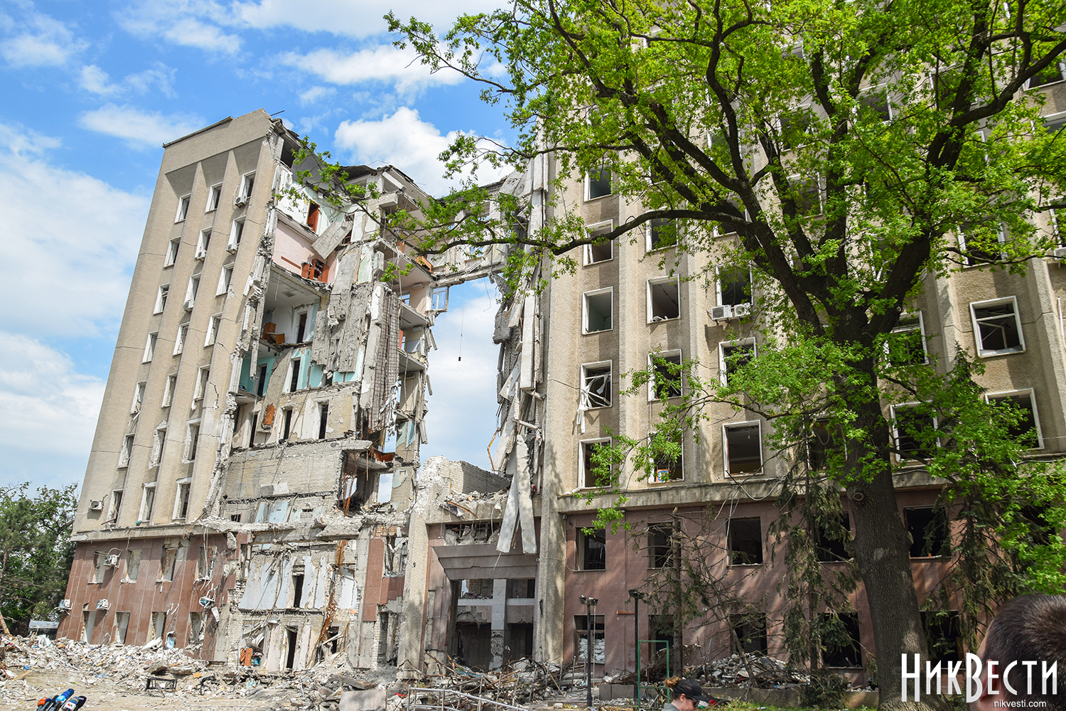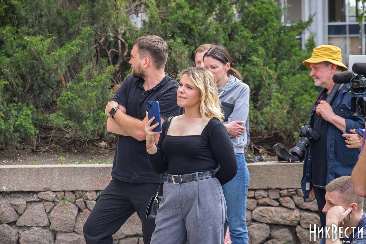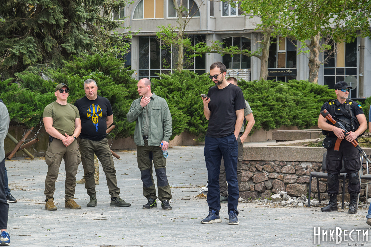 У здания разрушенной Николаевской ОГА вместе с военным губернатором Виталием Кимом они дали пресс-конференцию для журналистов Николаева, сообщают НикВести.