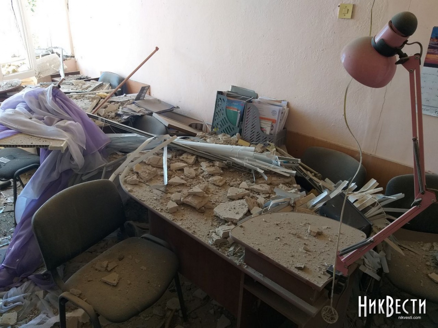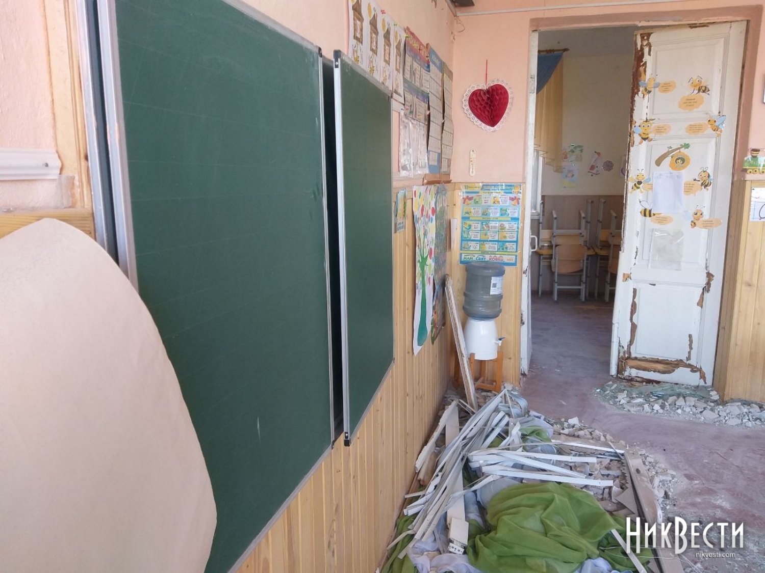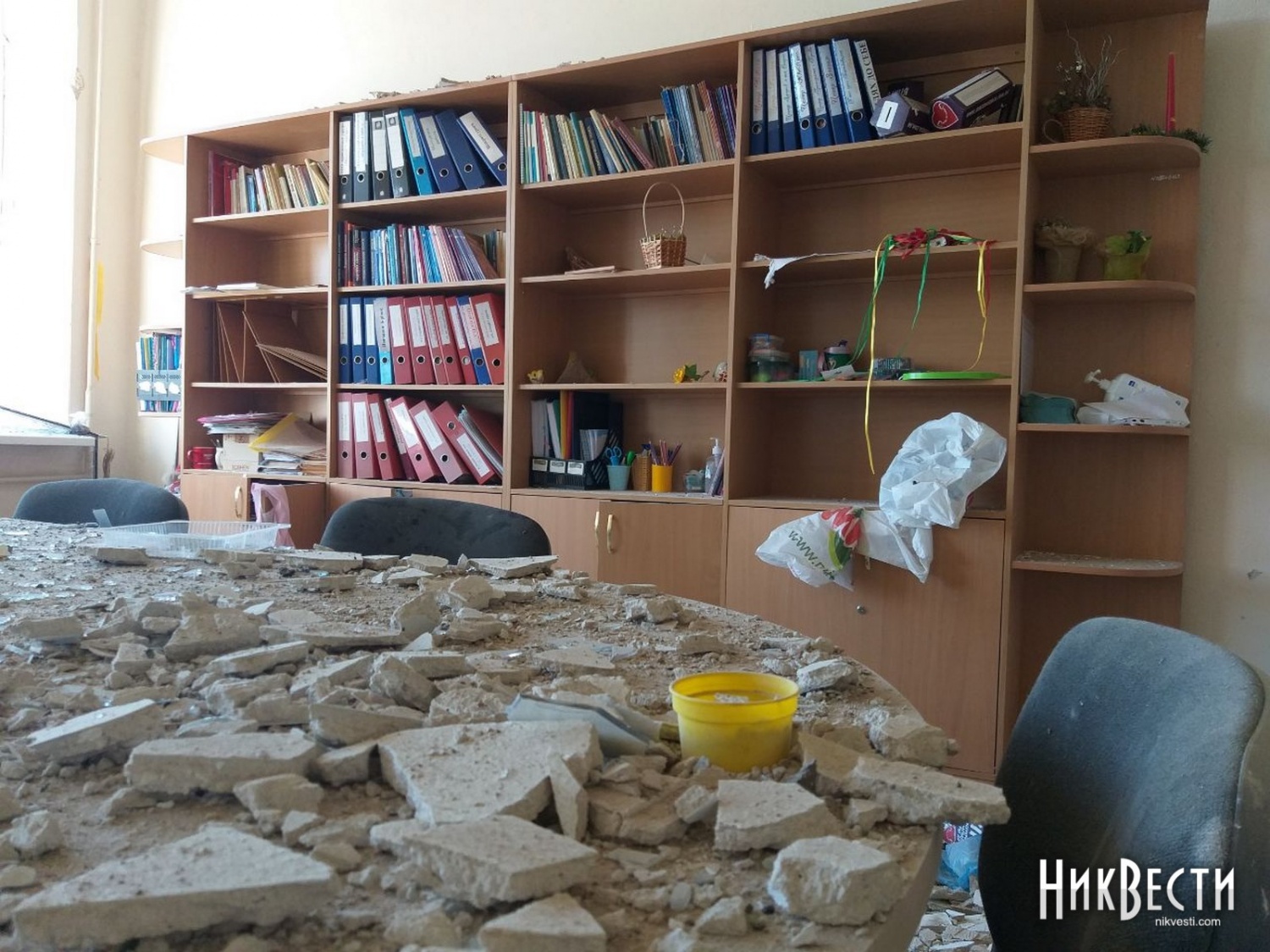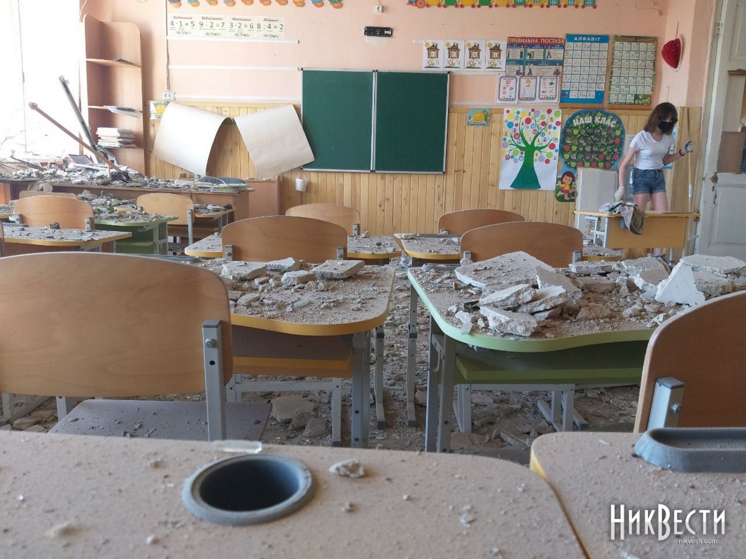 В другой школе удар пришелся по прилегающей территории. Взрывной волной в заведении выбило окна и двери, частично сорвало штукатурку и потолок, повредило мебель и технику.