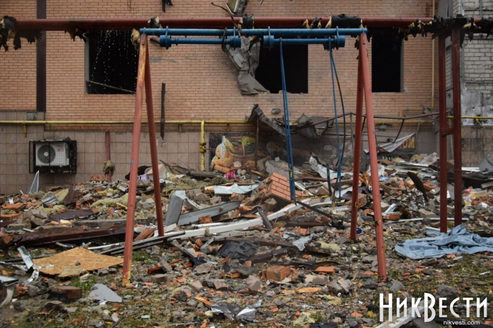 Как сообщалось, ракеты С-300 попали в пятиэтажку и девятиэтажку рядом. Разбиты автомобили, теплотрасса, детская площадка.