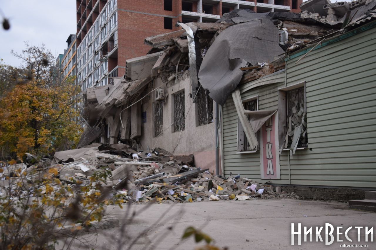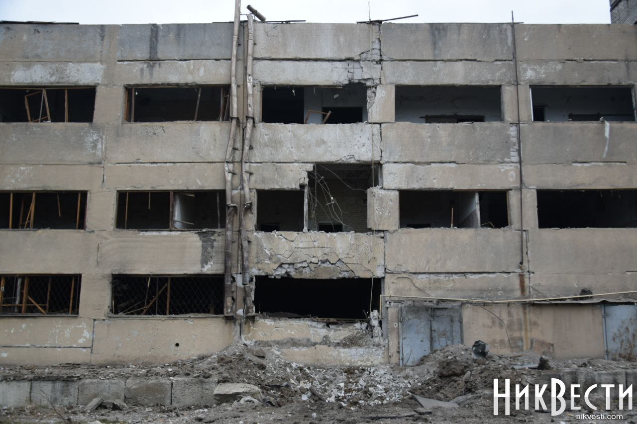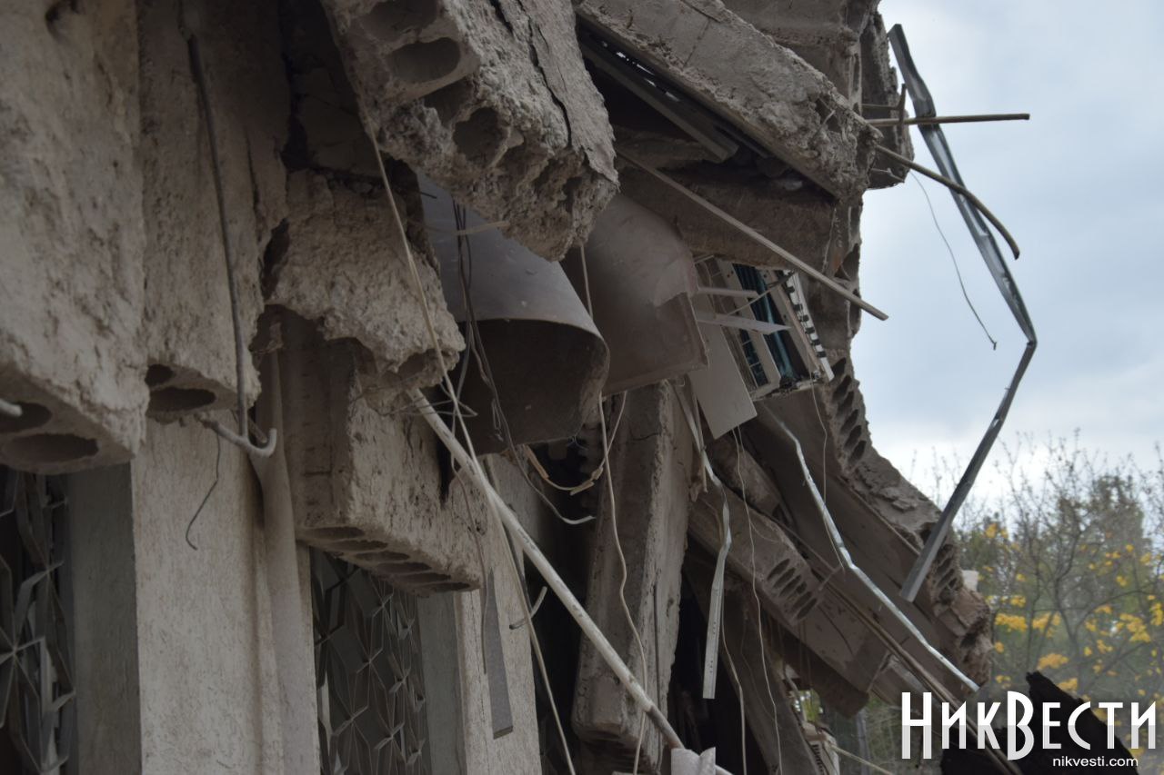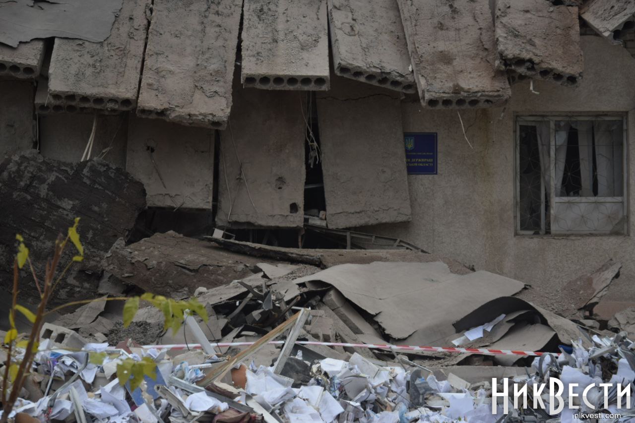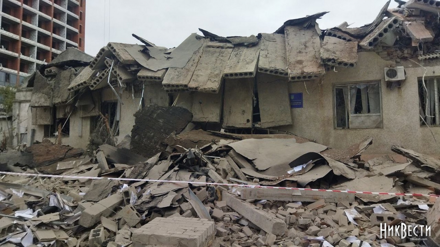 В результате ракетного удара по Николаеву разрушено трехэтажное административное здание и повреждено рядом расположенное многоэтажное новостроение. Также повреждения получила хлебопекарня. Один человек получил легкие ранения, уточнили в Николаевской ОВД.