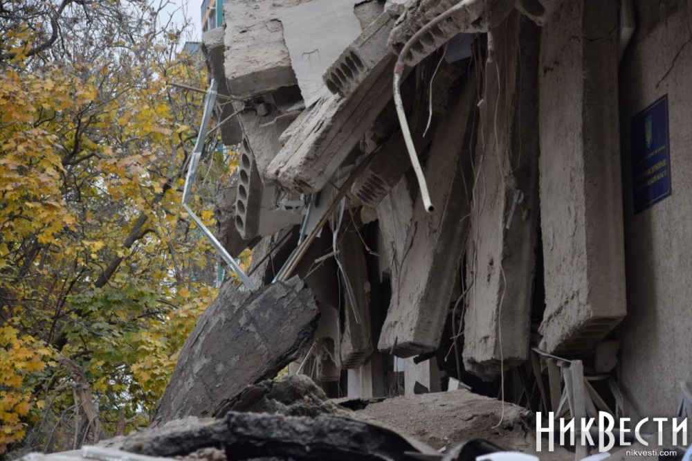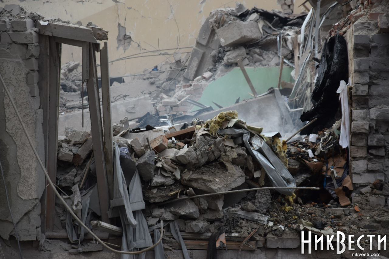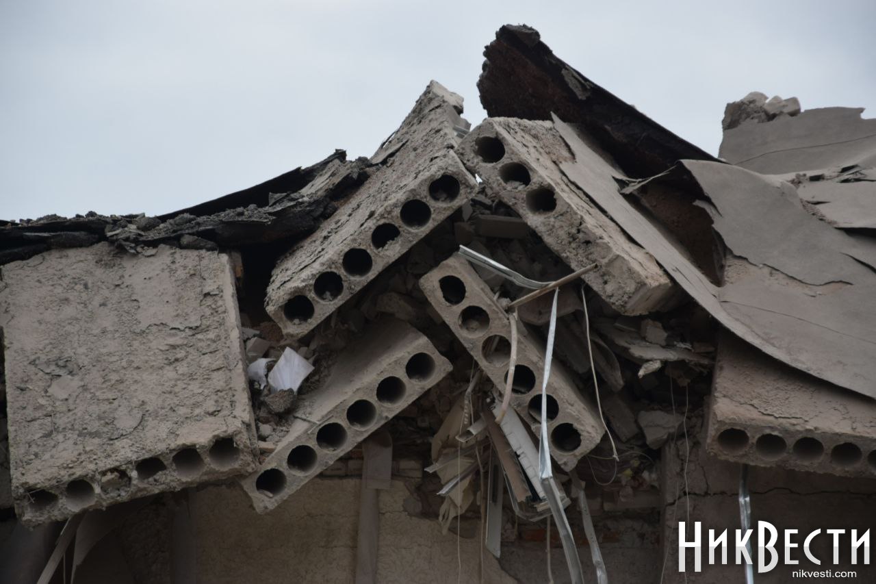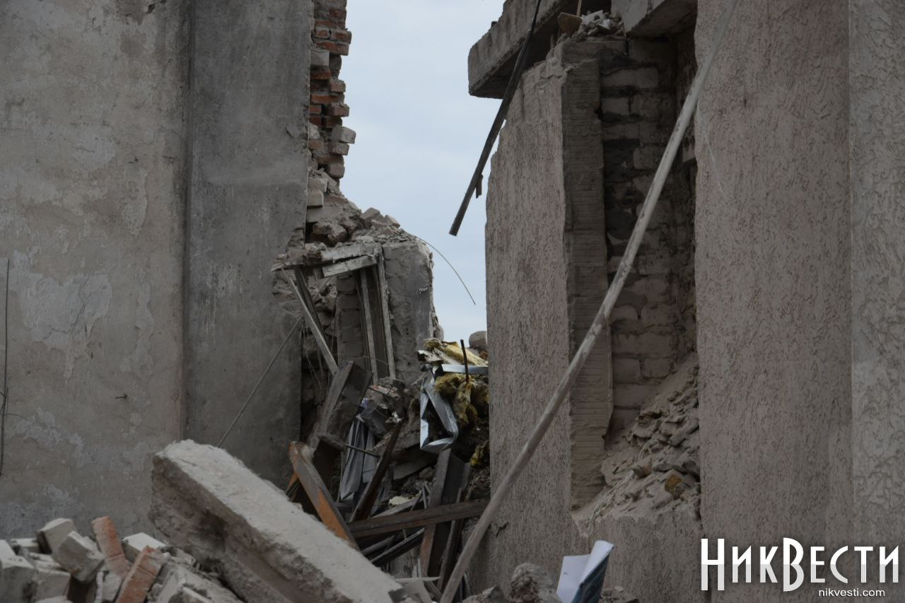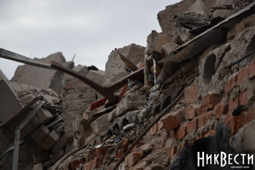 В результате ракетного удара по Николаеву разрушено трехэтажное административное здание и повреждено рядом расположенное многоэтажное новостроение. Также повреждения получила хлебопекарня. Один человек получил легкие ранения, уточнили в Николаевской ОВД.
