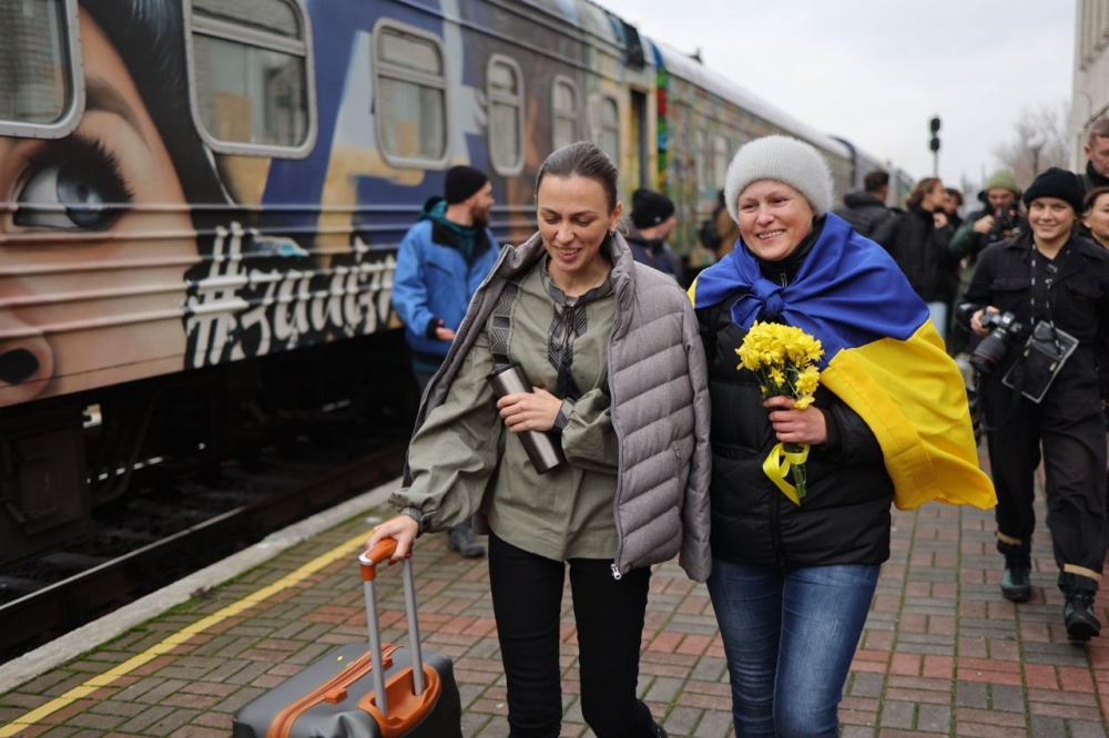 В освобожденный Херсон прибыл поезд из Киева впервые с начала полномасштабного вторжения России в Украину.