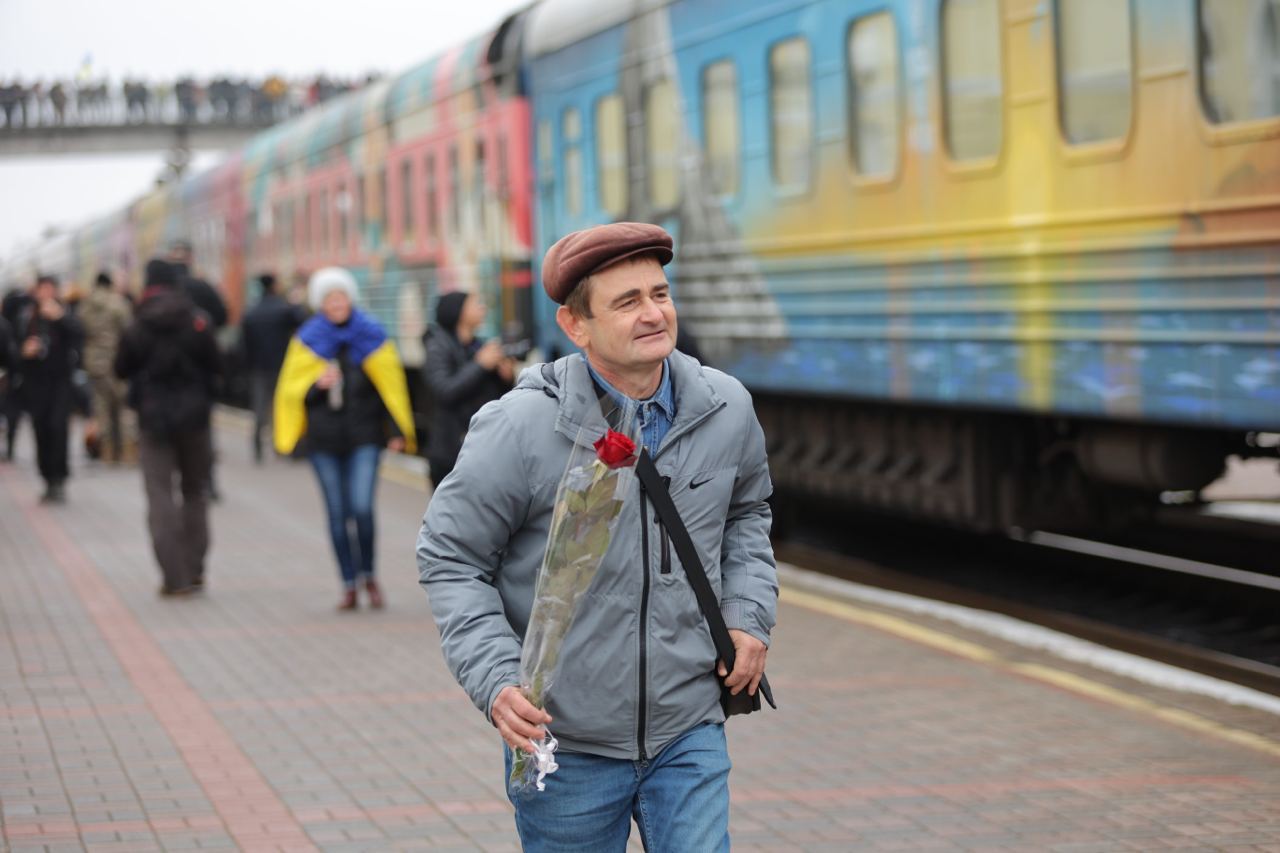 Поезд отправился из столицы 18 ноября в 22:14. В вагонах было 200 пассажиров, купивших билеты «К победе». Поезд прибыл с вагонами, расписанными украинскими художниками в рамках проекта «Поезда к Победе».