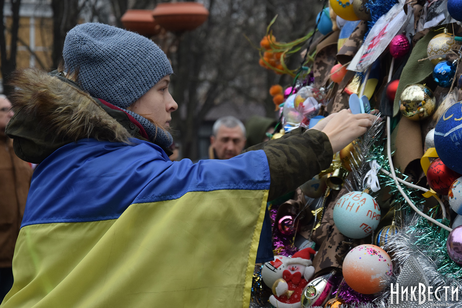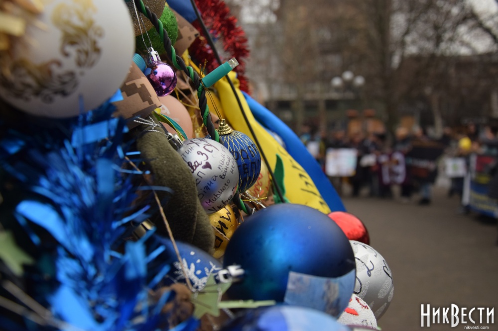 Участники акции прошли шествием от Соборной площади до Каштанового сквера. В завершение они повесили на «Елочку несокрушимых» шарики со своими пожеланиями.