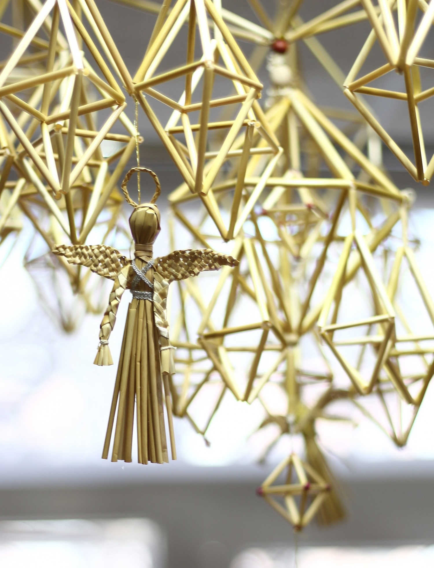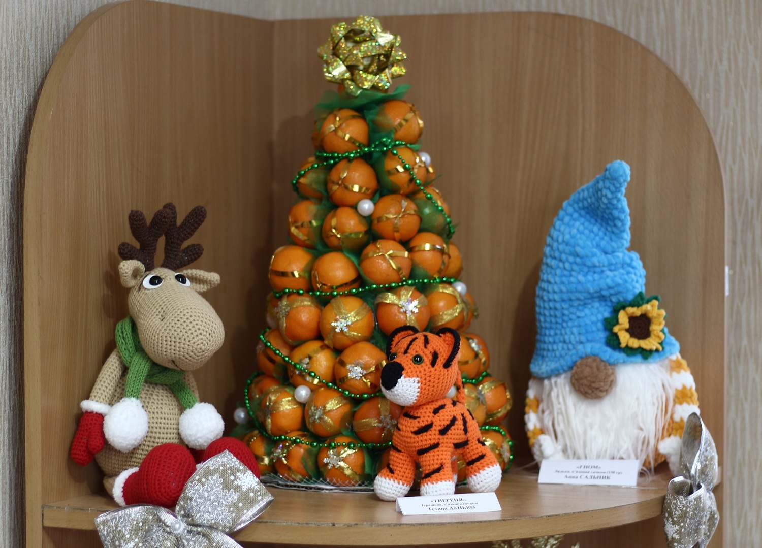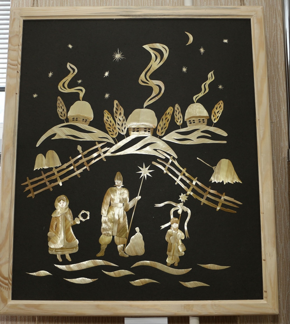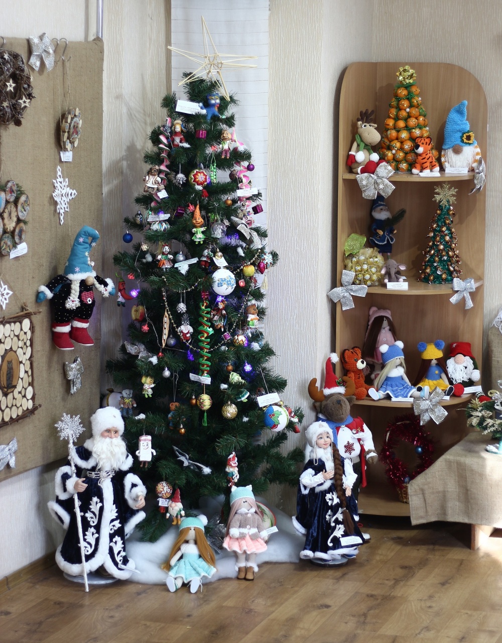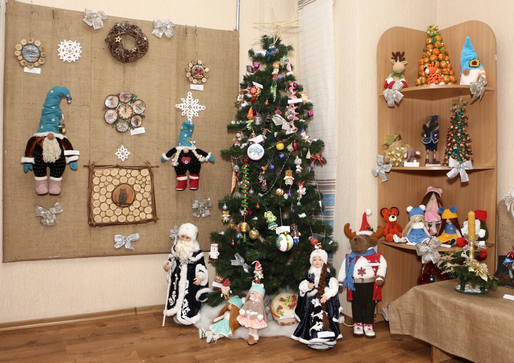 На выставке-аукционе представлены современные патриотические изделия: елка несокрушимости и игрушки, патриотические брелоки, украинские обереги и рождественские веночки, изделия из соломы, роспись по дереву, витинанки, новогодние куклы.