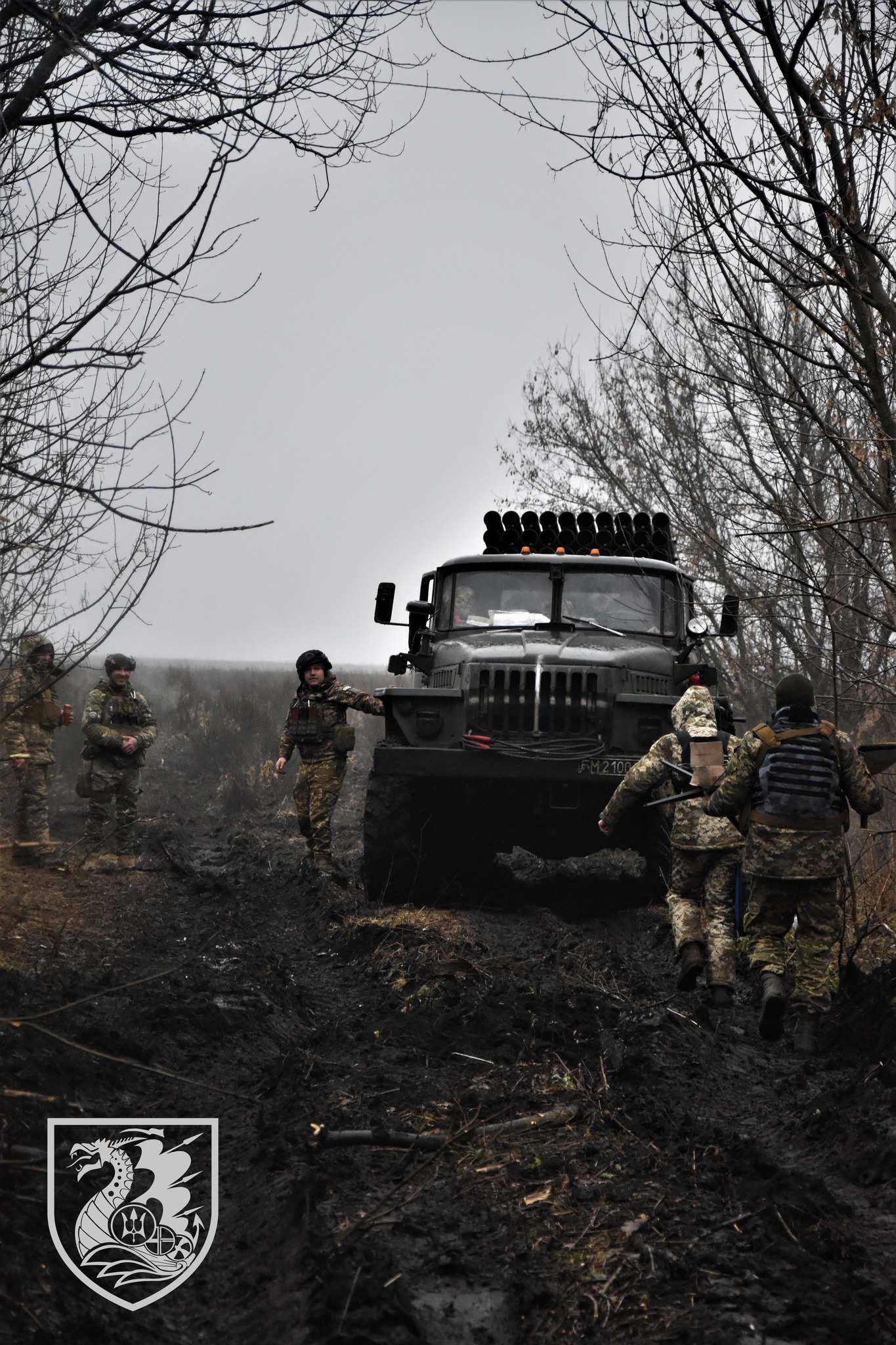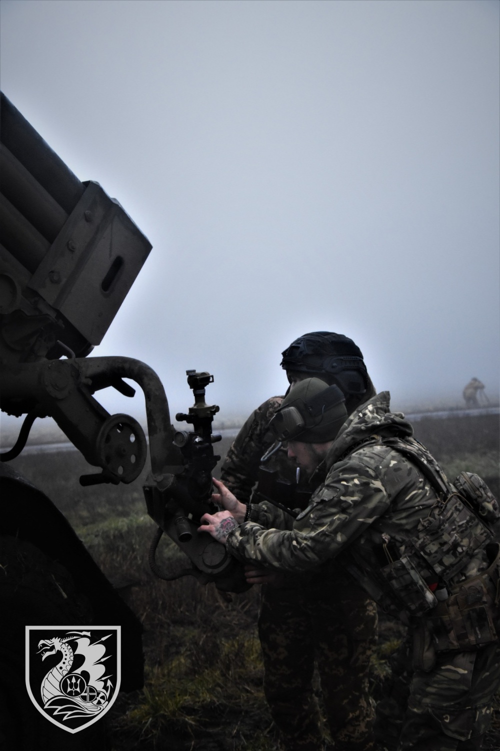 «Мороз, снег, туман, туман Донетчины... Для реактивщиков 36 отдельной бригады морской пехоты имени контр-адмирала Михаила Билинского не существует погодных условий, при которых боевая задача по уничтожению террористов-захватчиков не будет выполнена», — говорится в сообщении.