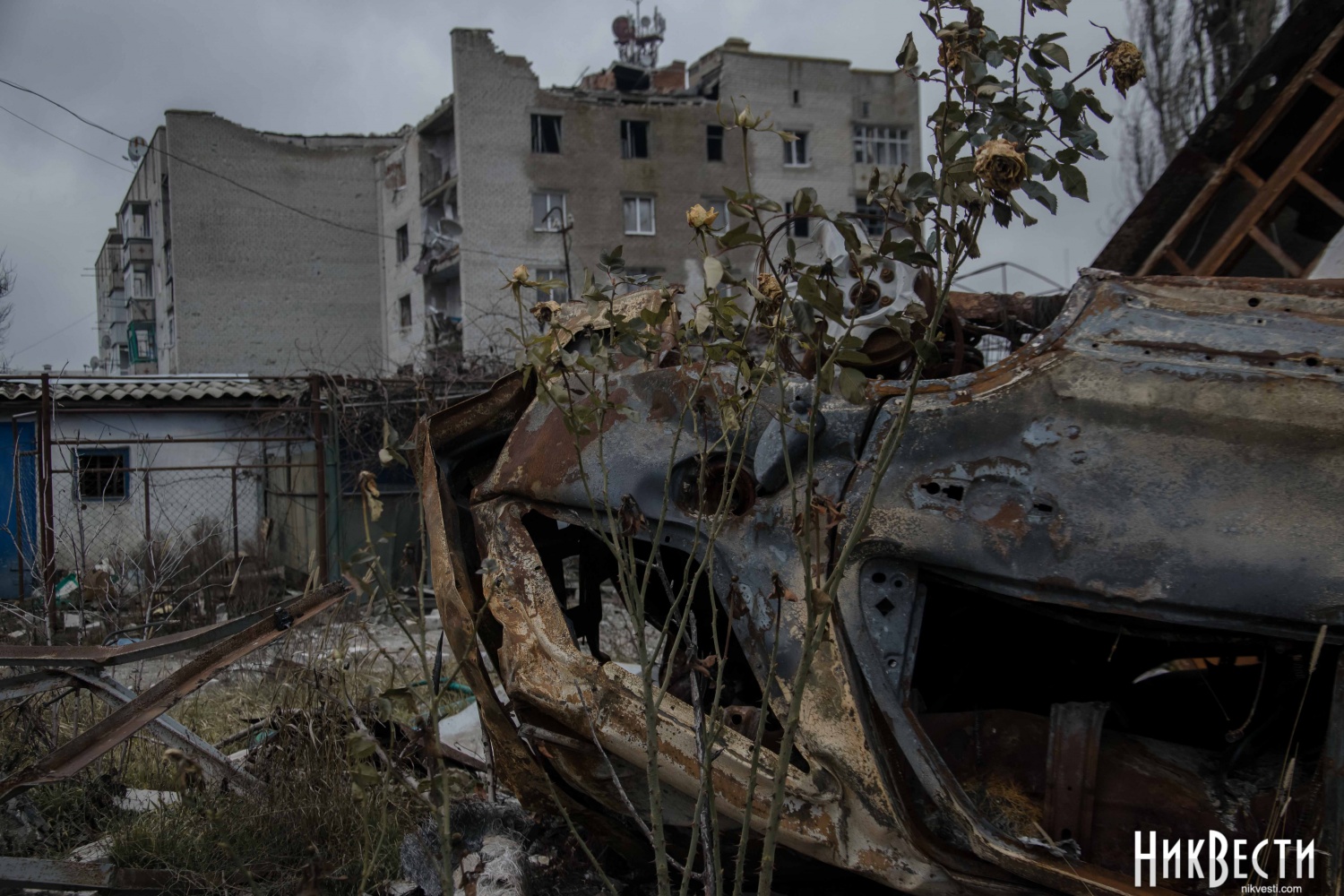 Фотокорреспондент НикВести побывал в Первомайском, где в результате российского вторжения разрушены жилые дома, магазины, школа