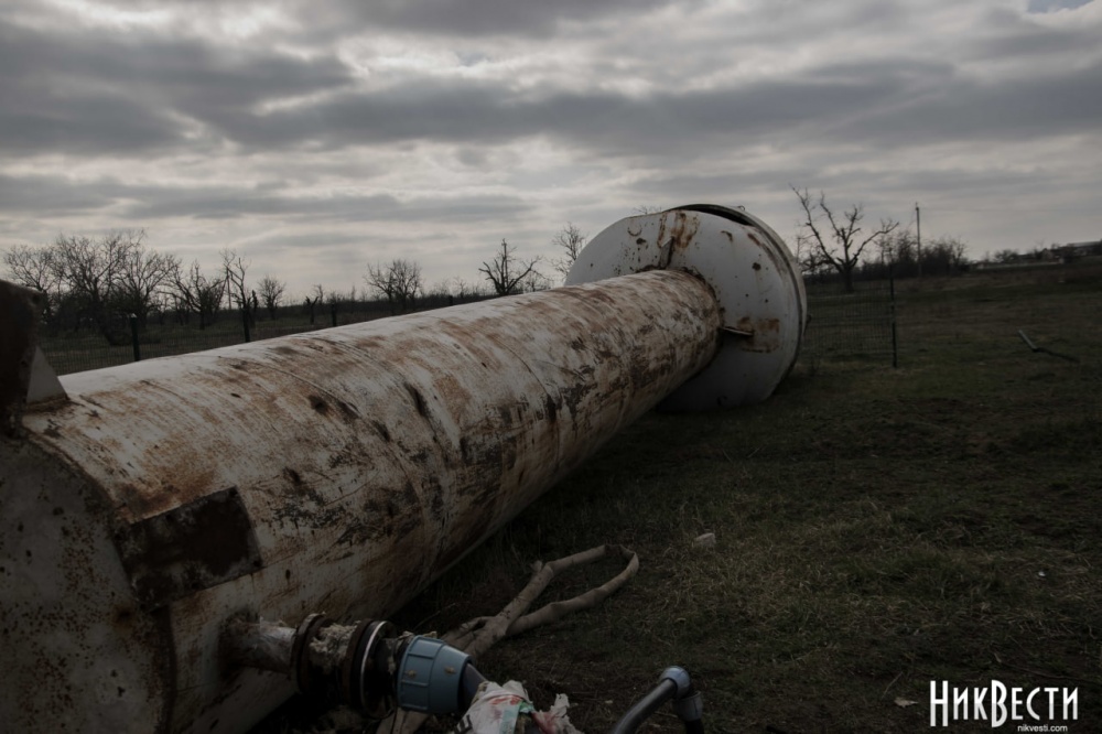 Воду жителям поселка развозят, ведь водонапорная башня также была повреждена в результате одного из вражеских обстрелов.