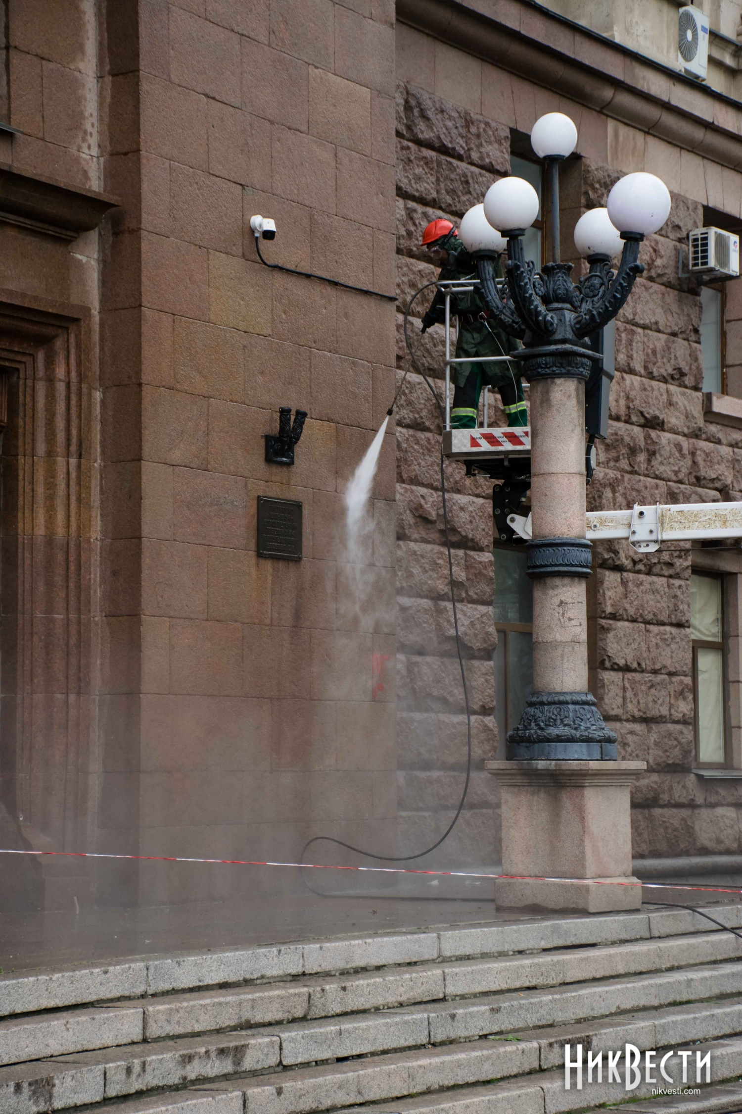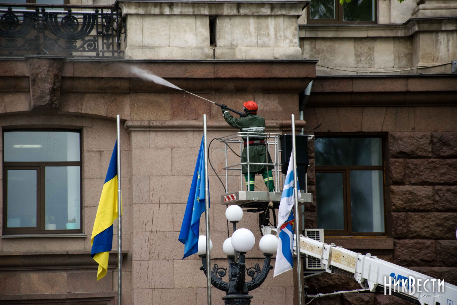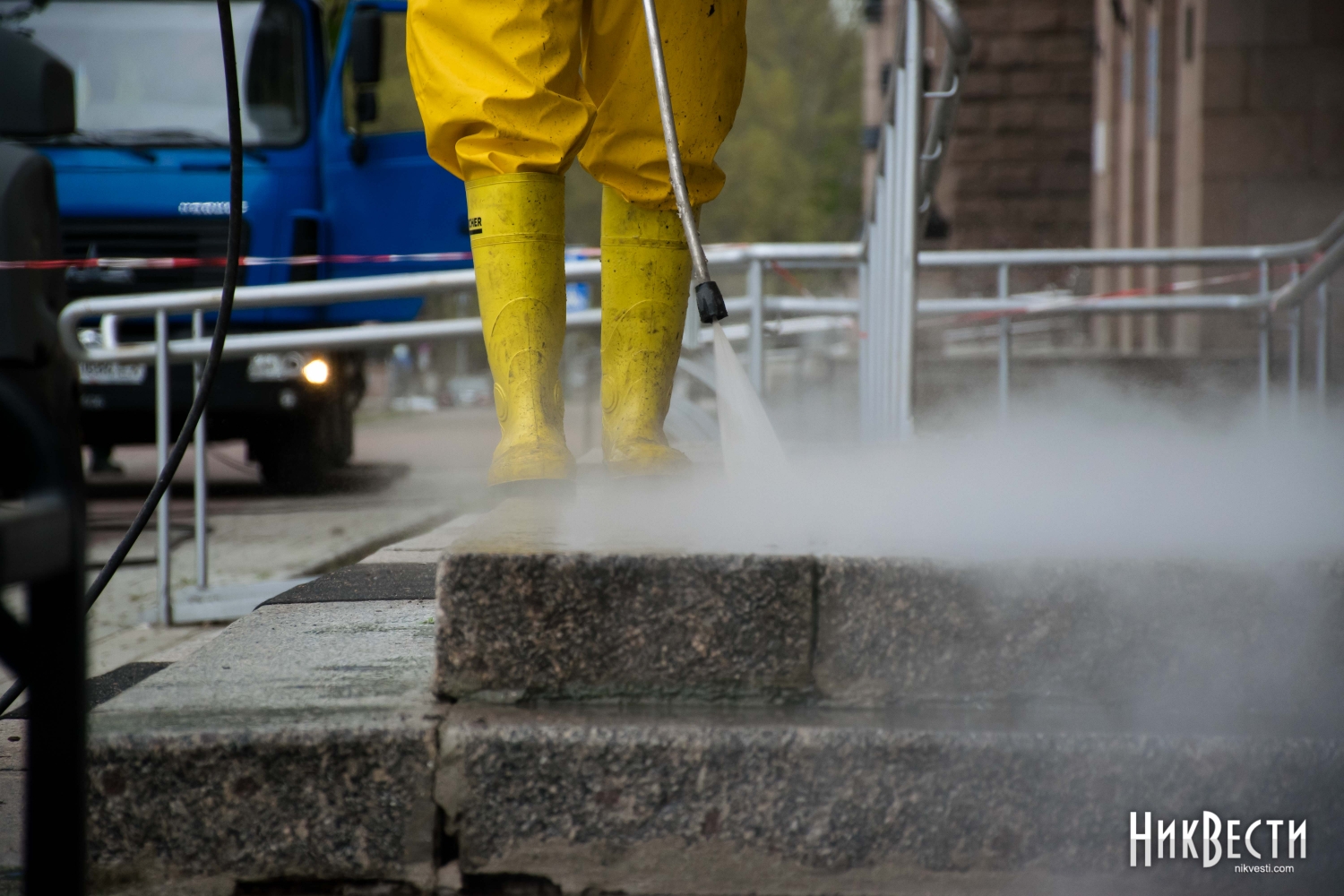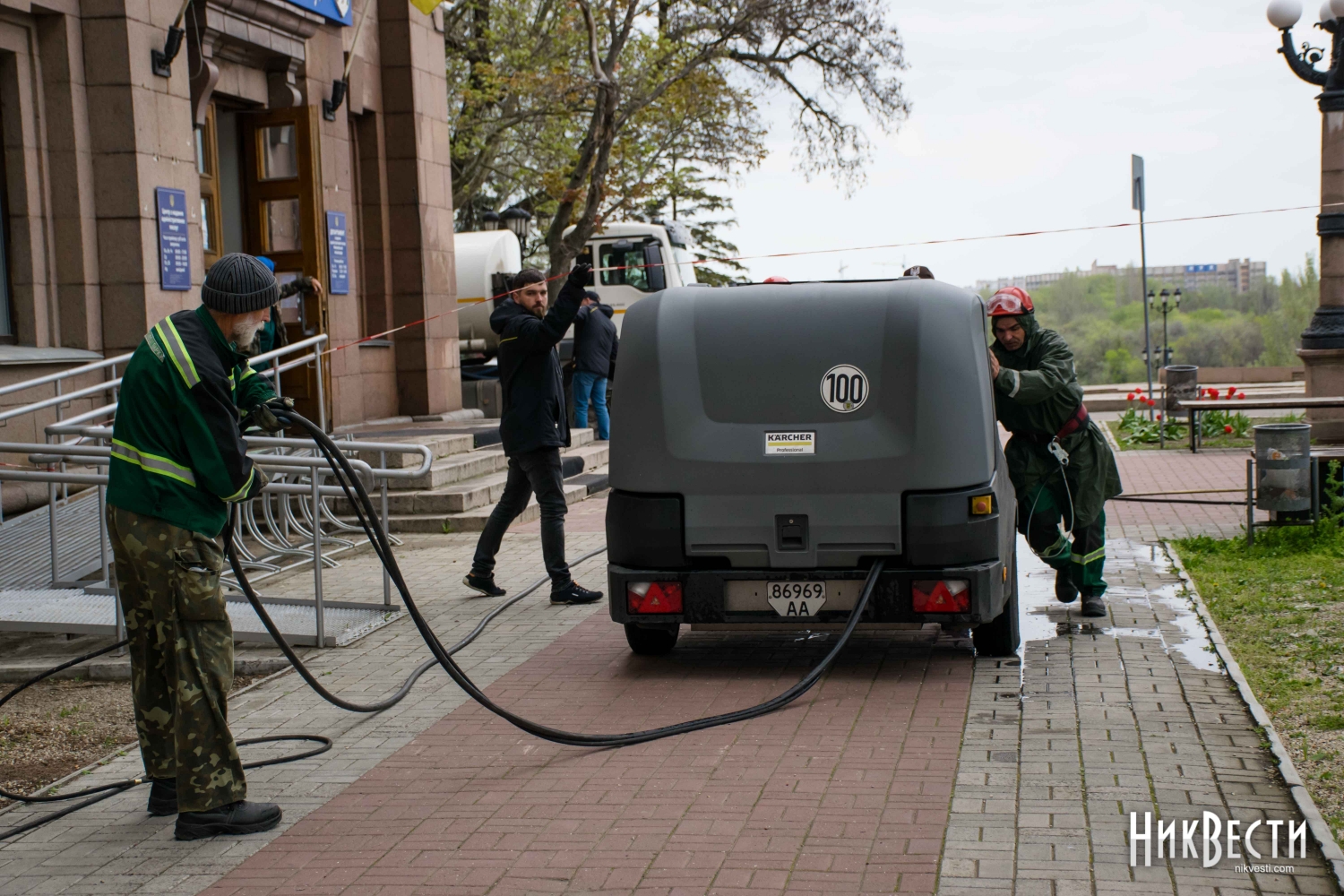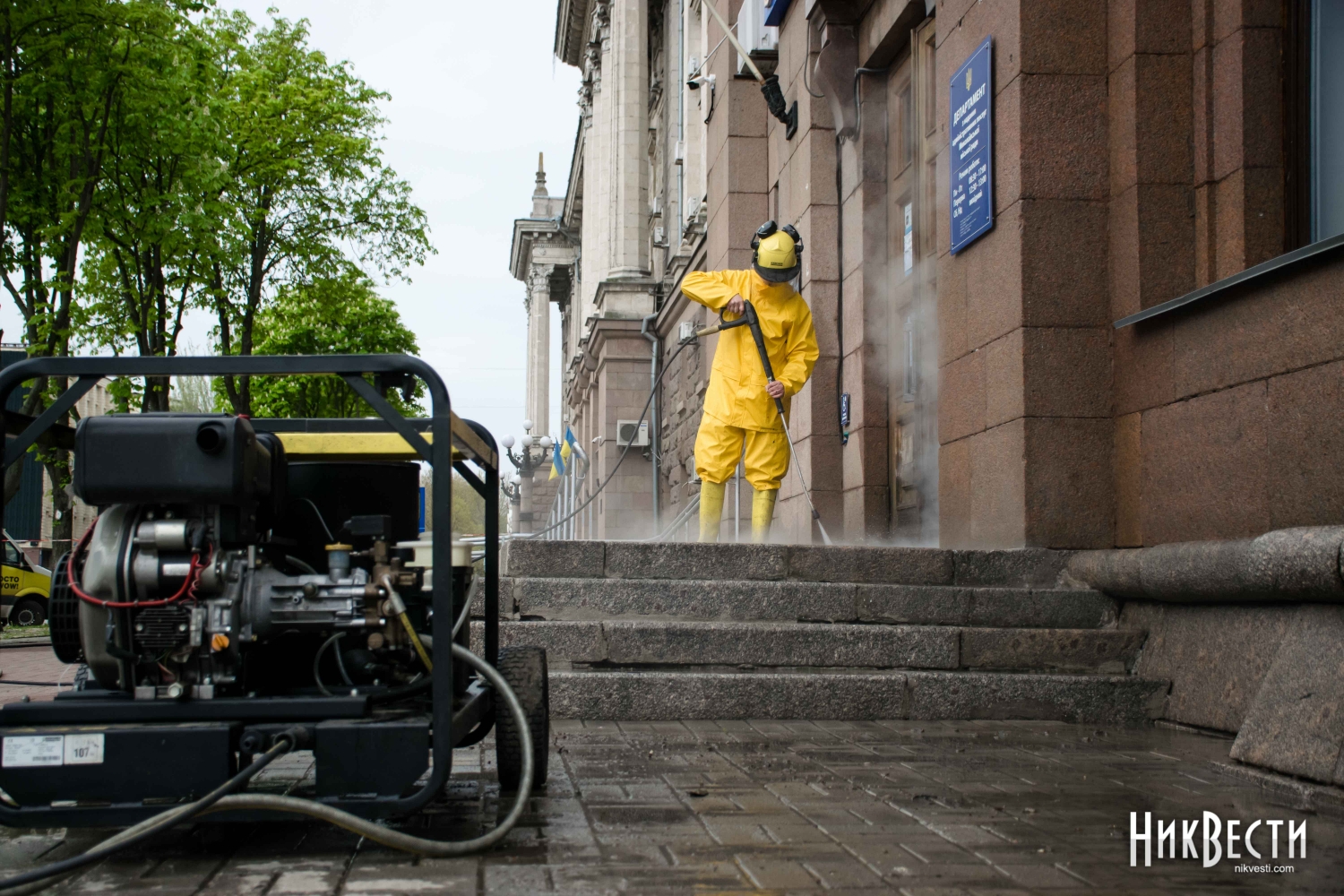 В среду, 26 апреля, в Николаеве стартовал проект очистки города. Городской совет мыли техникой Karcher, которую Николаев планирует закупить в будущем.