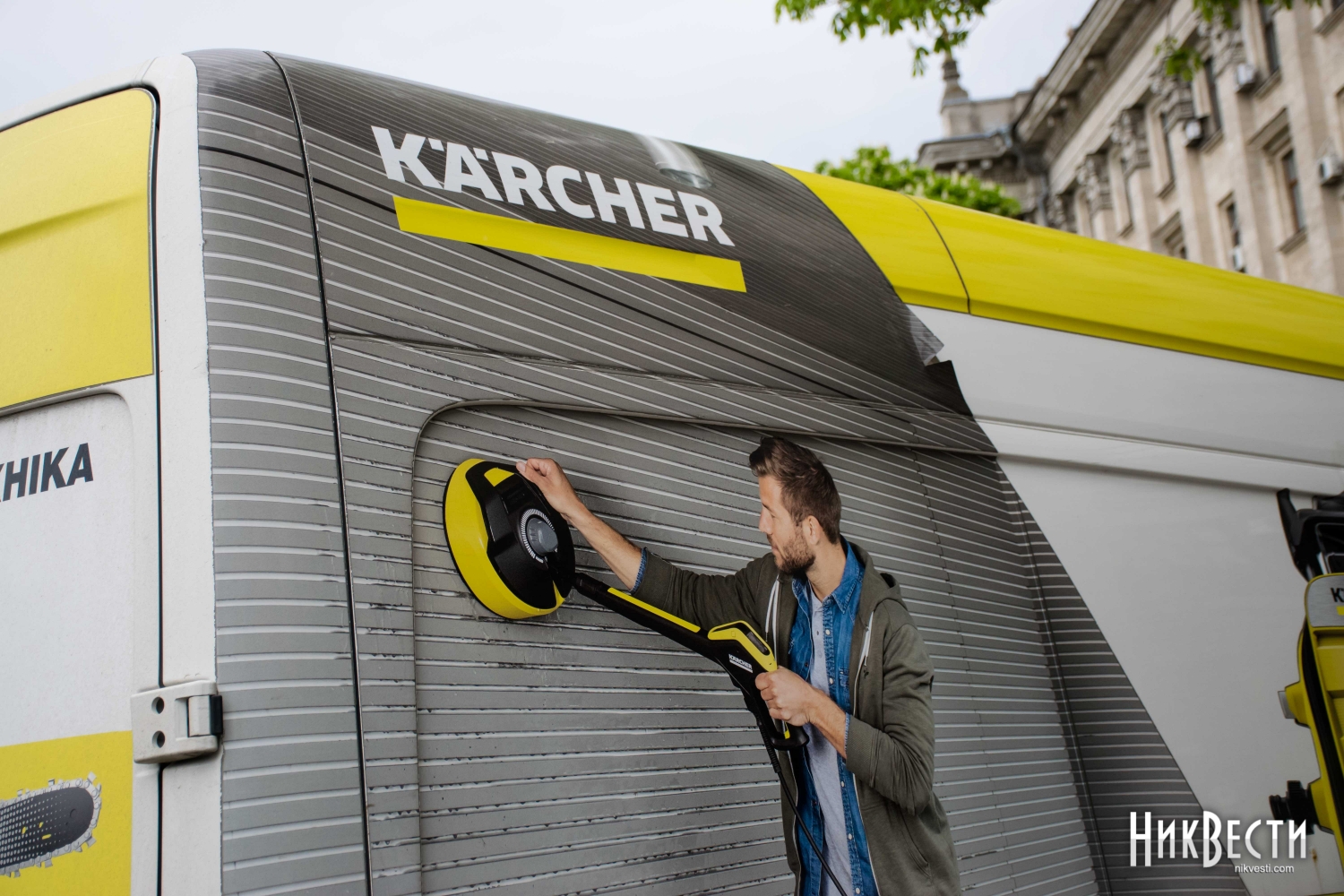 В рамках инициативы Karcher убирает Украину, представители компании Karcher привезли в Николаев свою технику, на которой работники КП Парки в рамках обучения убирали здание Николаевского горсовета и Соборную площадь.