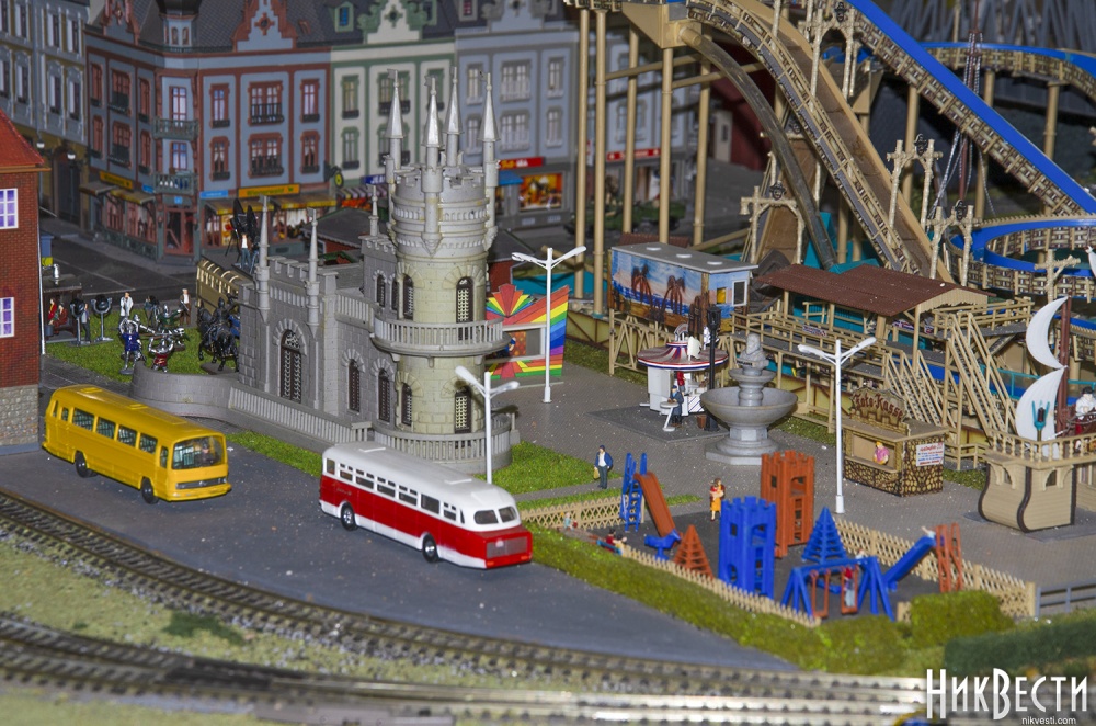 — Dream city уже у нас стоит шестой год, в этом году в июле будет шесть лет, коллекции, которую собирали 35 лет. И это были три николаевских парня: Андрей Шинкаренко, Анатолий Смышляев и Леонид Фисенко, решившие сделать выставку с такими макетами, которые сейчас мы назвали «Dream city мир в миниатюре», это город мечты этих ребят. Они этим макетом воплотили свою мечту в жизнь и мало того, что они делают, какие-то европейские здания есть у нас разные здания, как с людьми, так и с транспортом, железнодорожным путем, – рассказала организатор выставки Инна Шинкаренко.