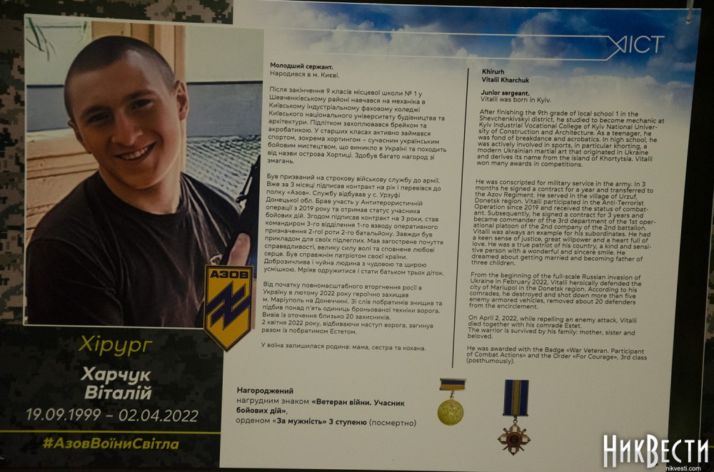 Автором фотовыставки стала Вера Литвиненко – мать бойца Владислава с позывным «Вектор», погибшим 23 марта 2022 года в результате российского артобстрела в Мариуполе.
