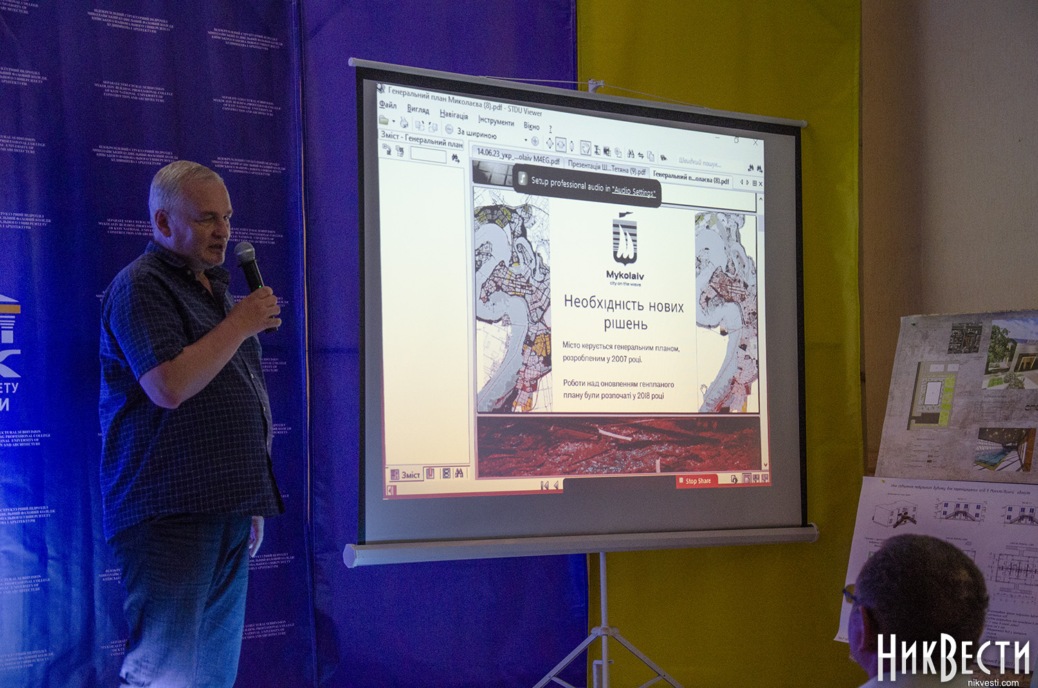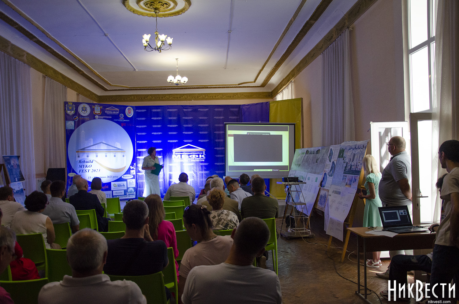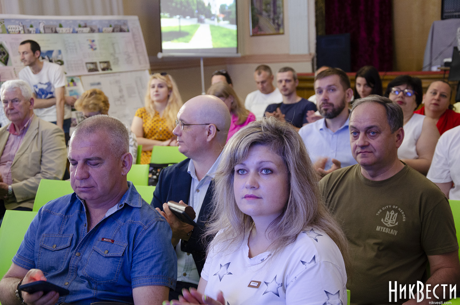 На мероприятии презентовали концепцию и эскизпроекты по восстановлению разрушенных объектов города Николаева в результате военной агрессии и предлагали идеи развития инфраструктуры.