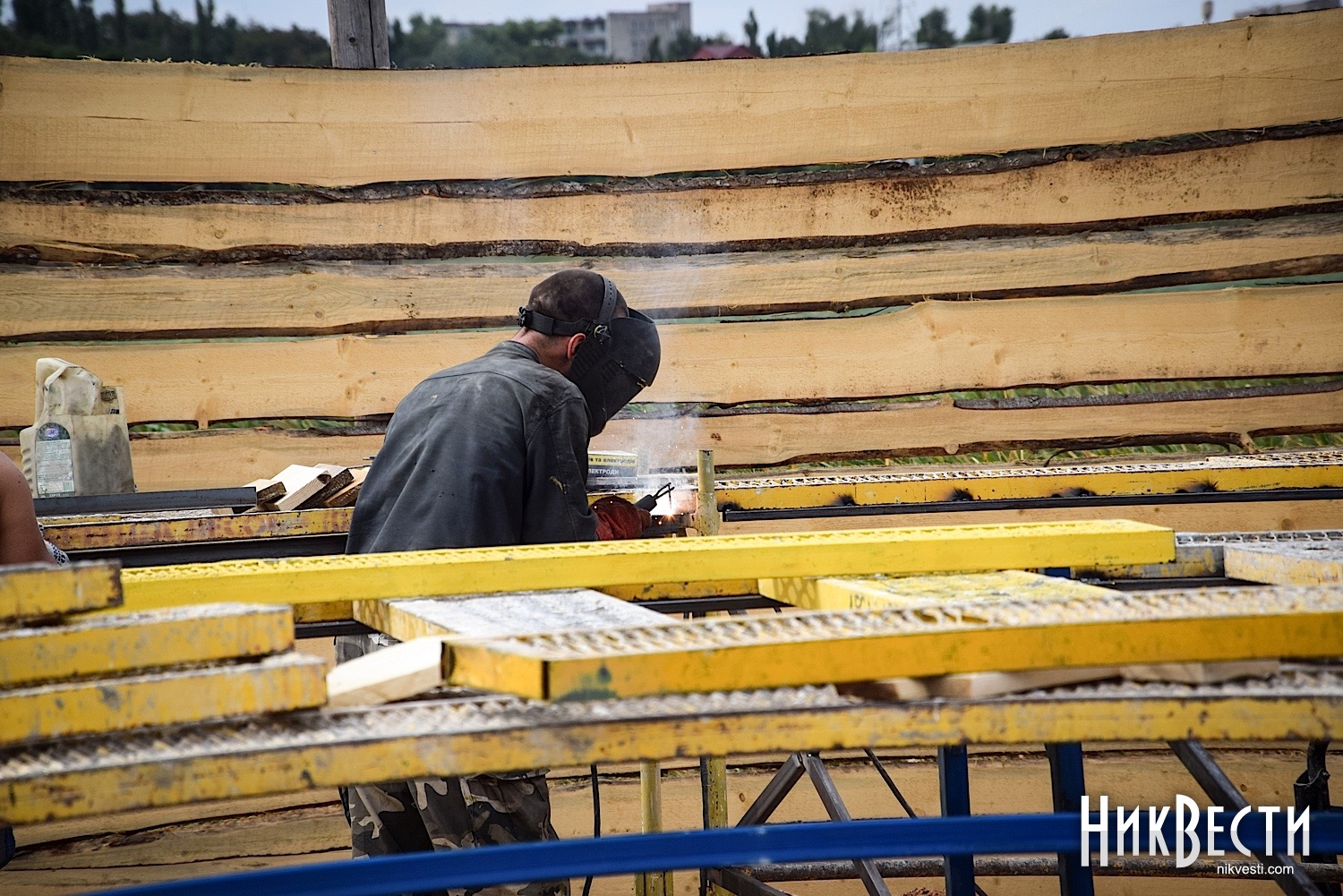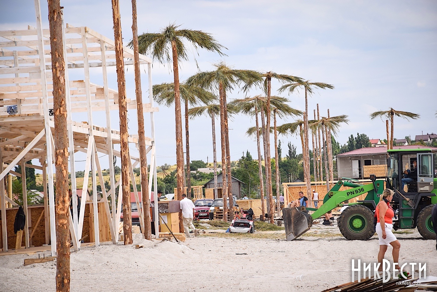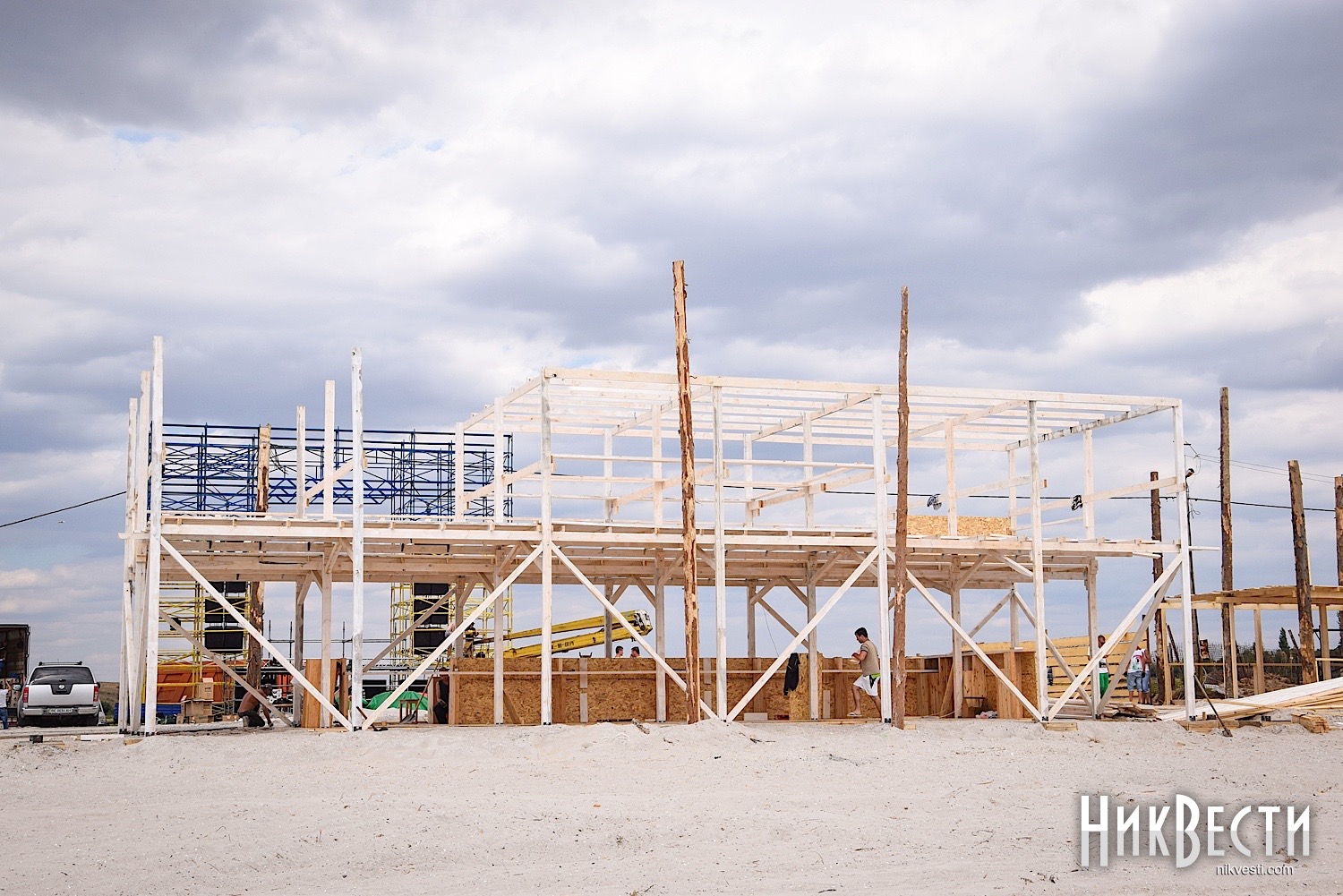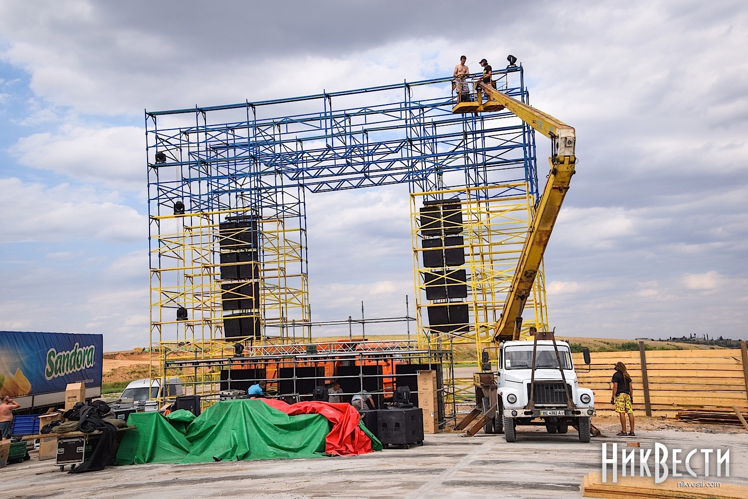 Сегодня НикВести инспектировали площадку, где через 3 дня начнется фестиваль. Работа кипит! На 4 гектарах земли сосредоточено больше 100 рабочих, которые, не покладая рук, возводят уличные кафе, танцполы, монтируют сцены и оформляют территорию.