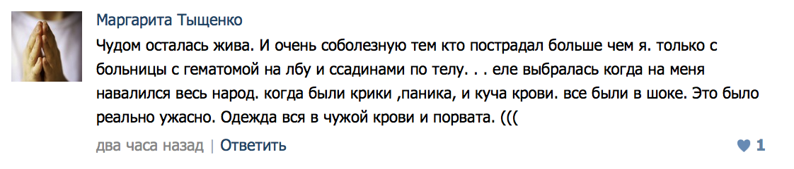 Обновлено 01:04 Девушка, находившаяся в салоне маршрутки в момент ДТП написала в социальной сети ВКонтакте о проишествии.