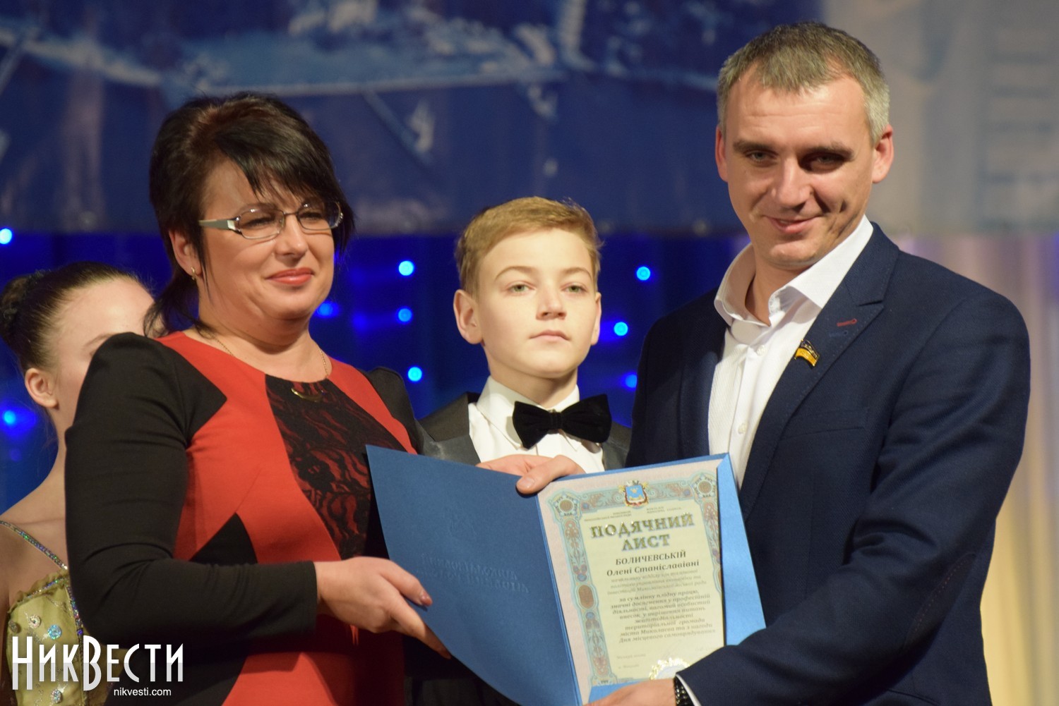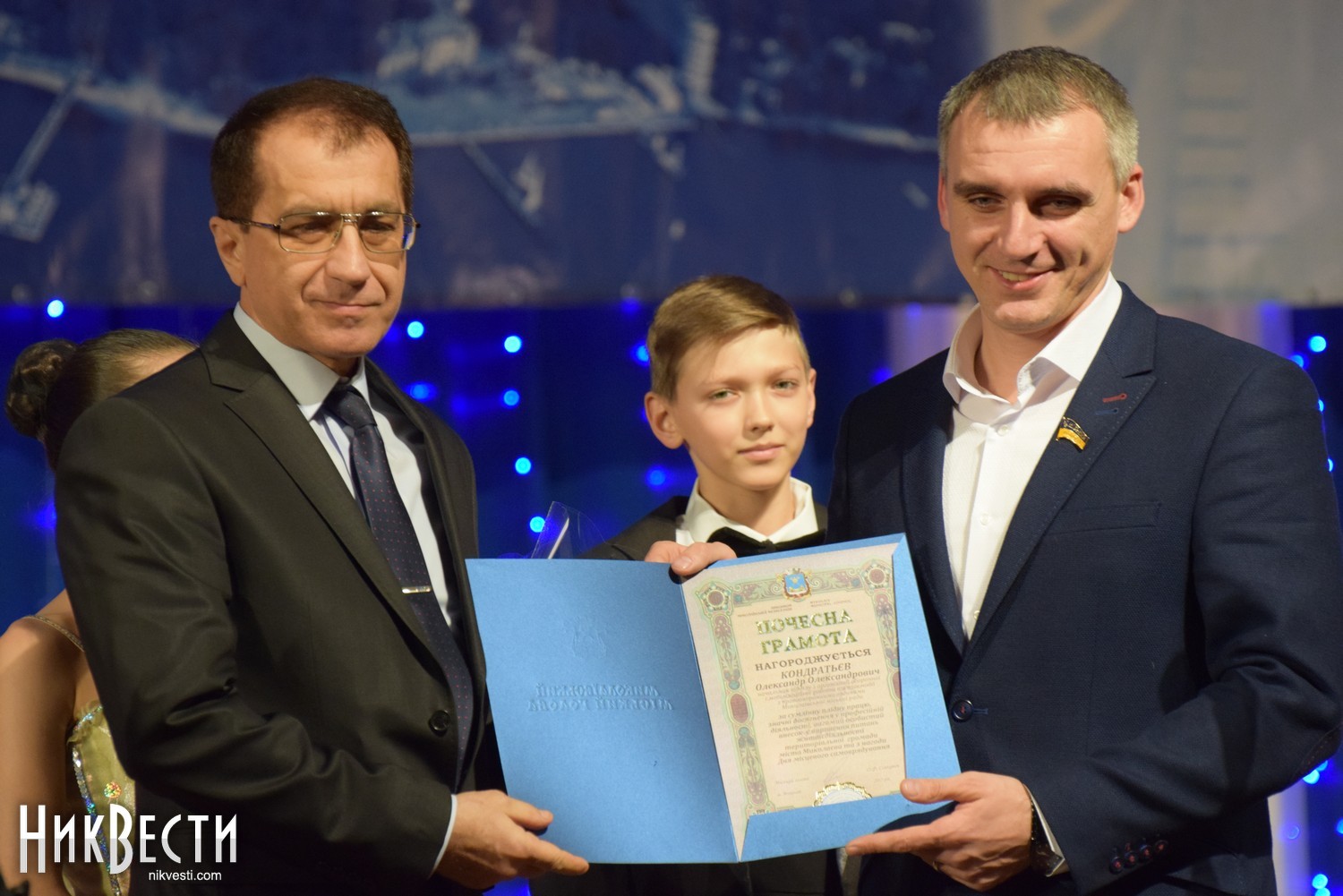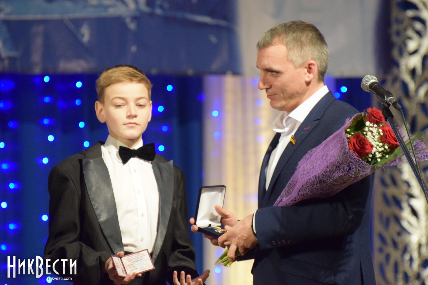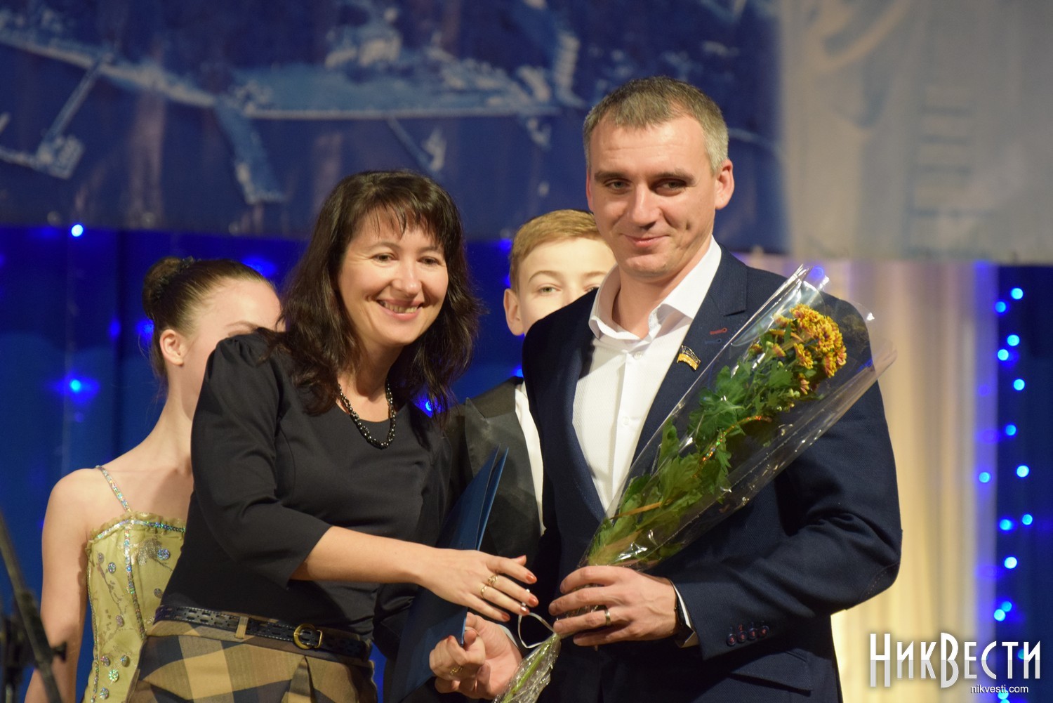 На сцене городского Дворца творчества учащихся состоялась непродолжительная церемония награждения, во время которой Александр Сенкевич пообещал, что не станет портить традицию поющих мэров Николаева и в ближайшее время возьмет уроки у двух более «подкованных» в этом вопросе депутатов.
