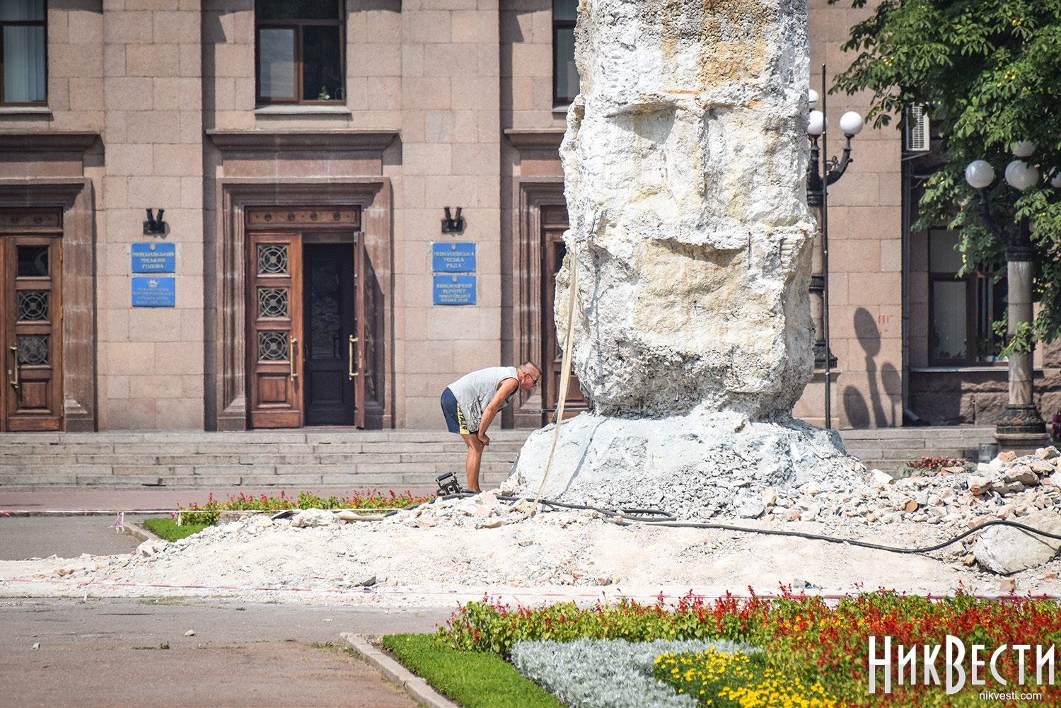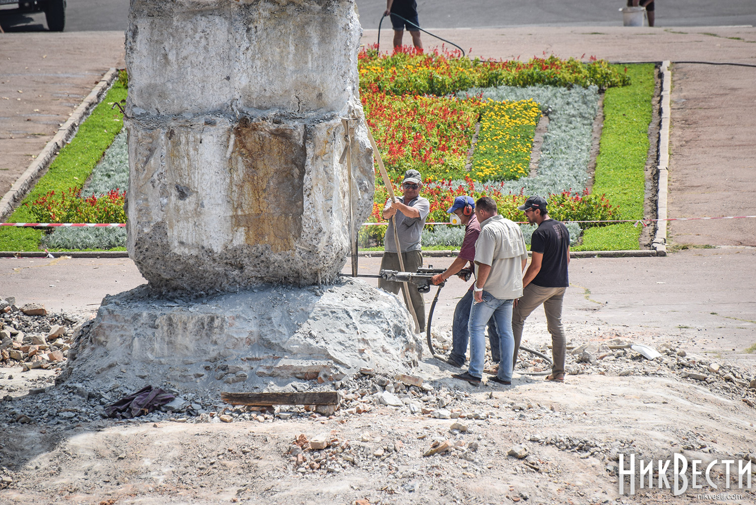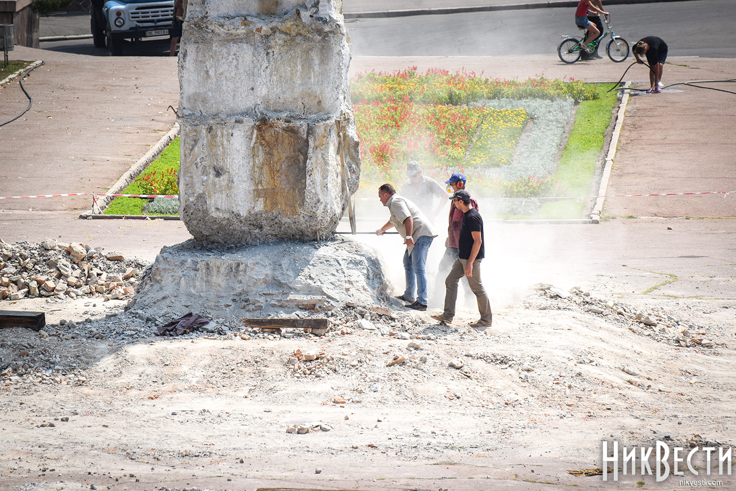 Сегодня утром в Николаеве на площади Соборной снесли остатки постамента памятника Владимиру Ленину.