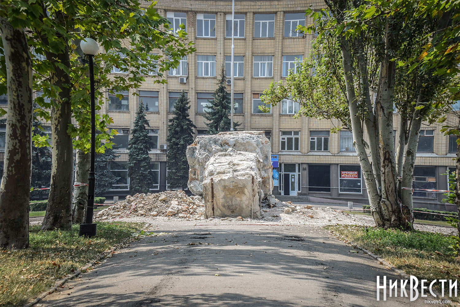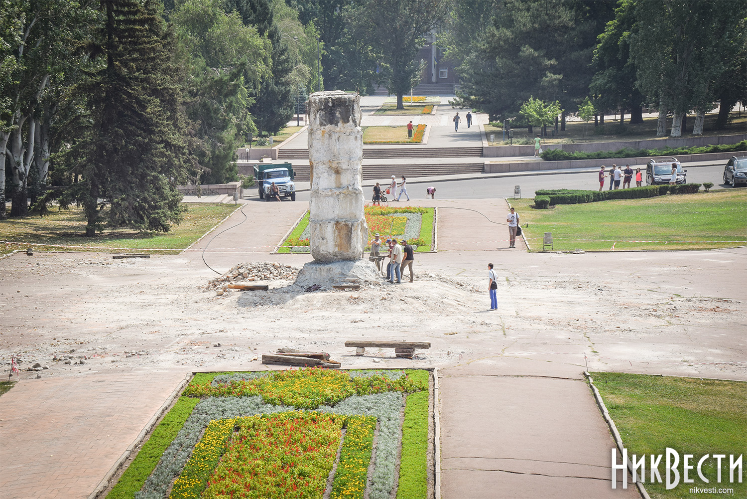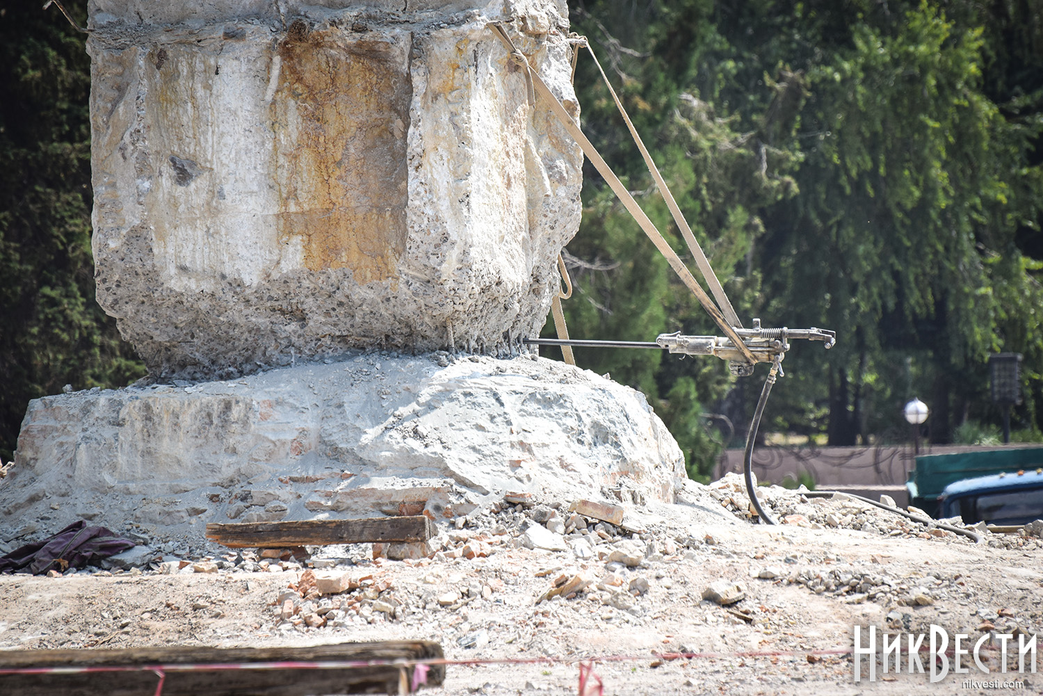 Сегодня утром в Николаеве на площади Соборной снесли остатки постамента памятника Владимиру Ленину.