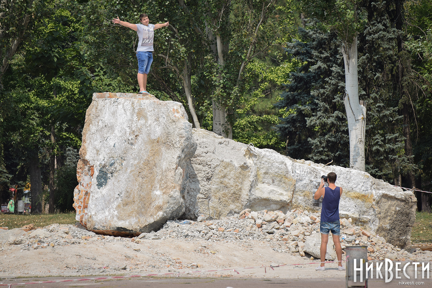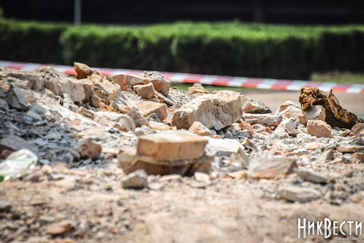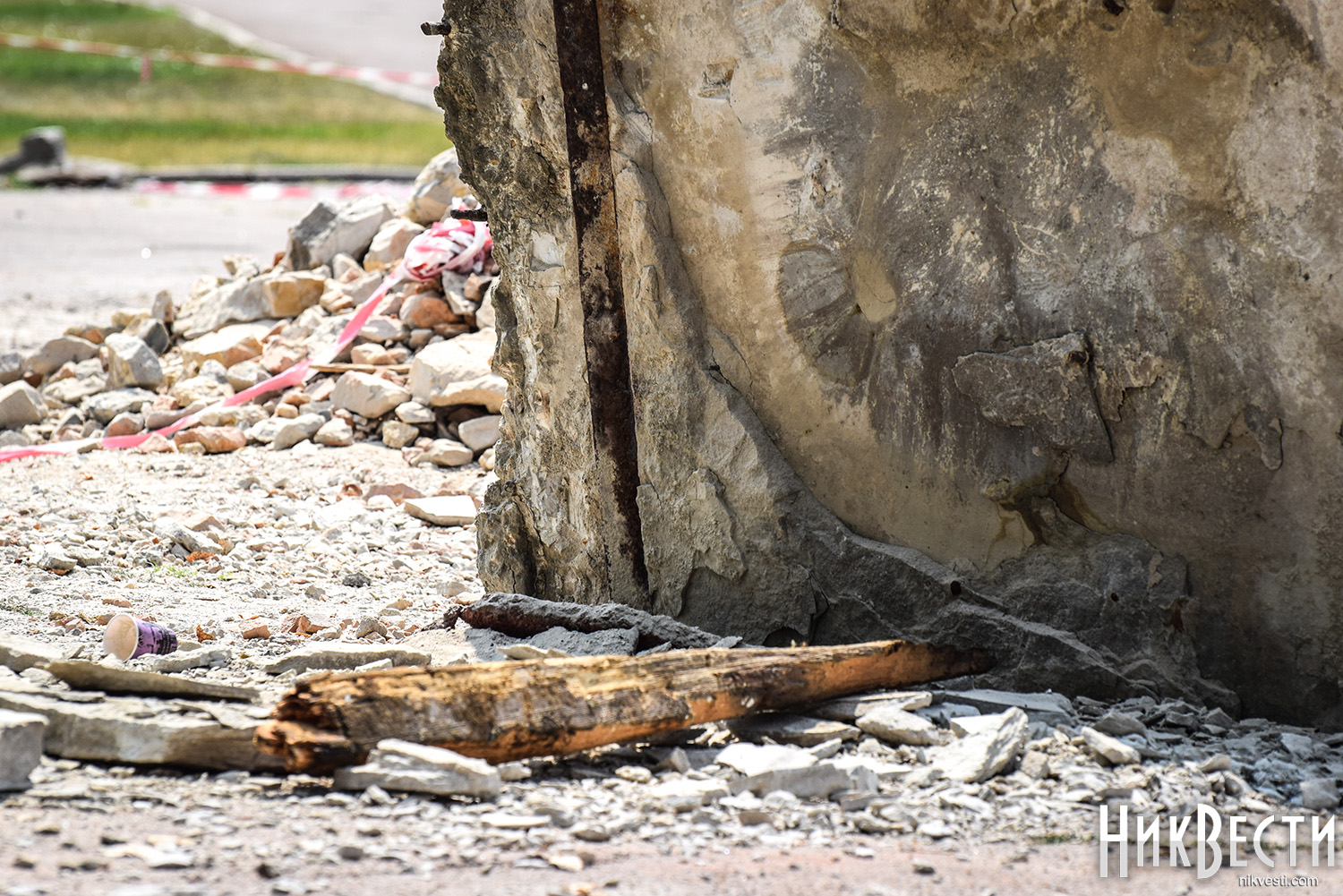 Место работ оградили сигнальными лентами. Бетонную глыбу еще не увезли, - сообщает корреспондент НикВестей.