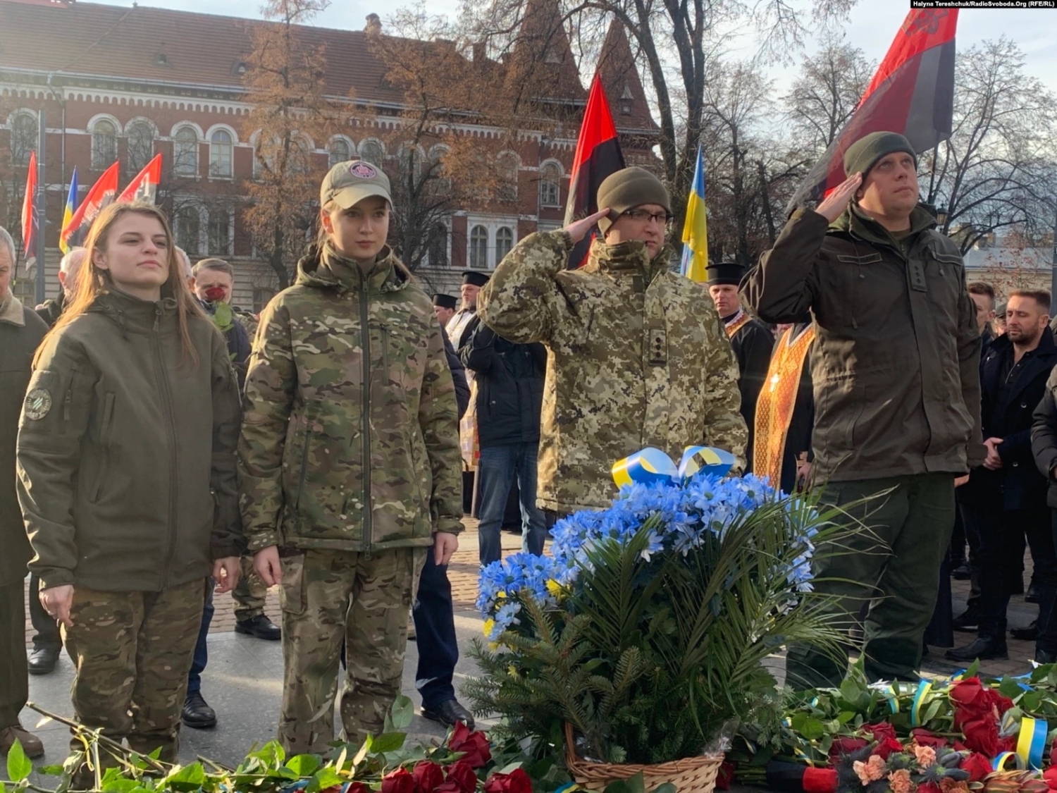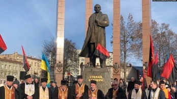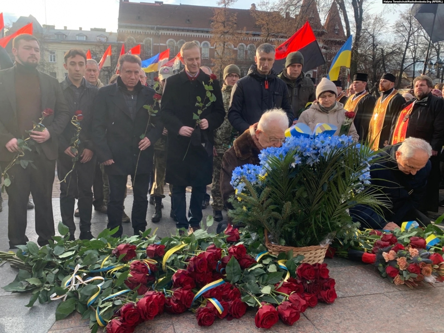 Представители власти и общественность возложили цветы к подножию памятника руководителю ОУН, духовенство провело молитву за Украину.