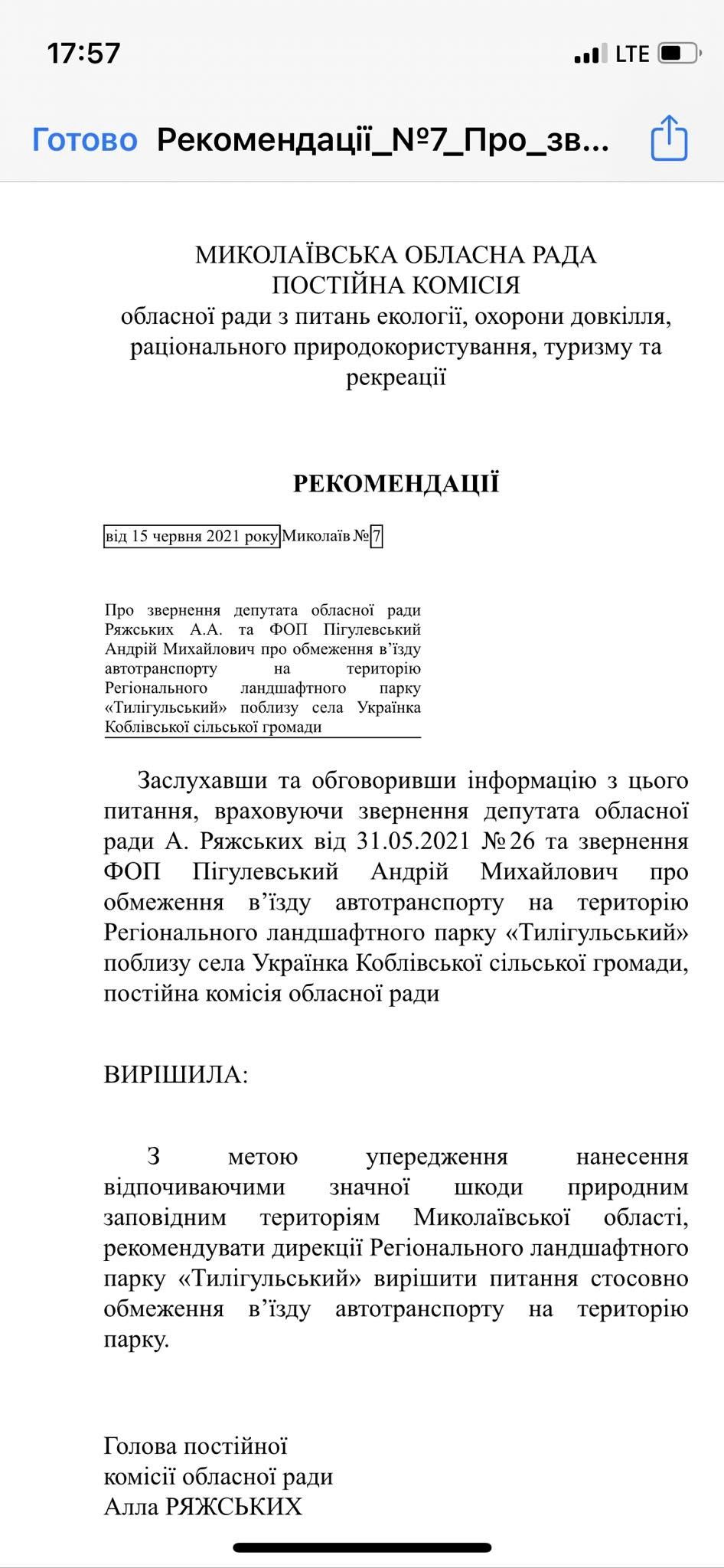 Въезд транспорта на территорию Регионального ландшафтного парка «Тилигульский» ограничили по согласованию профильной комиссии Николаевского областного совета.