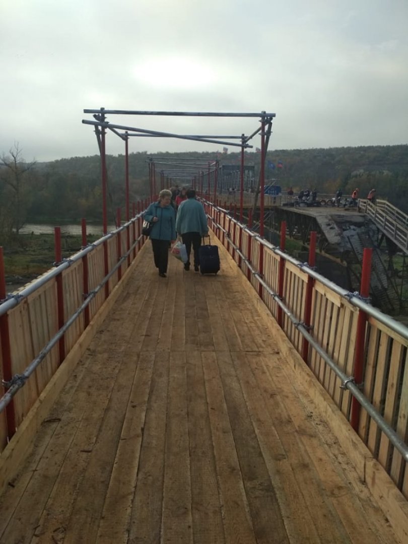 В пятницу, 4 октября, в Станице Луганской Луганской области открыли временный обходной мост для пешеходов.