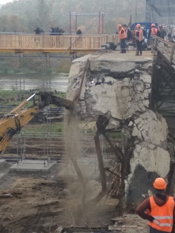 Одновременно специалисты Укртрансмоста начали демонтаж разрушенных конструкций основного моста.