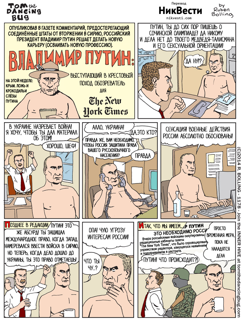 В этом комиксе президент РФ Владимир Путин представлен в качестве журналиста The New York Times, пишущего об Украине.