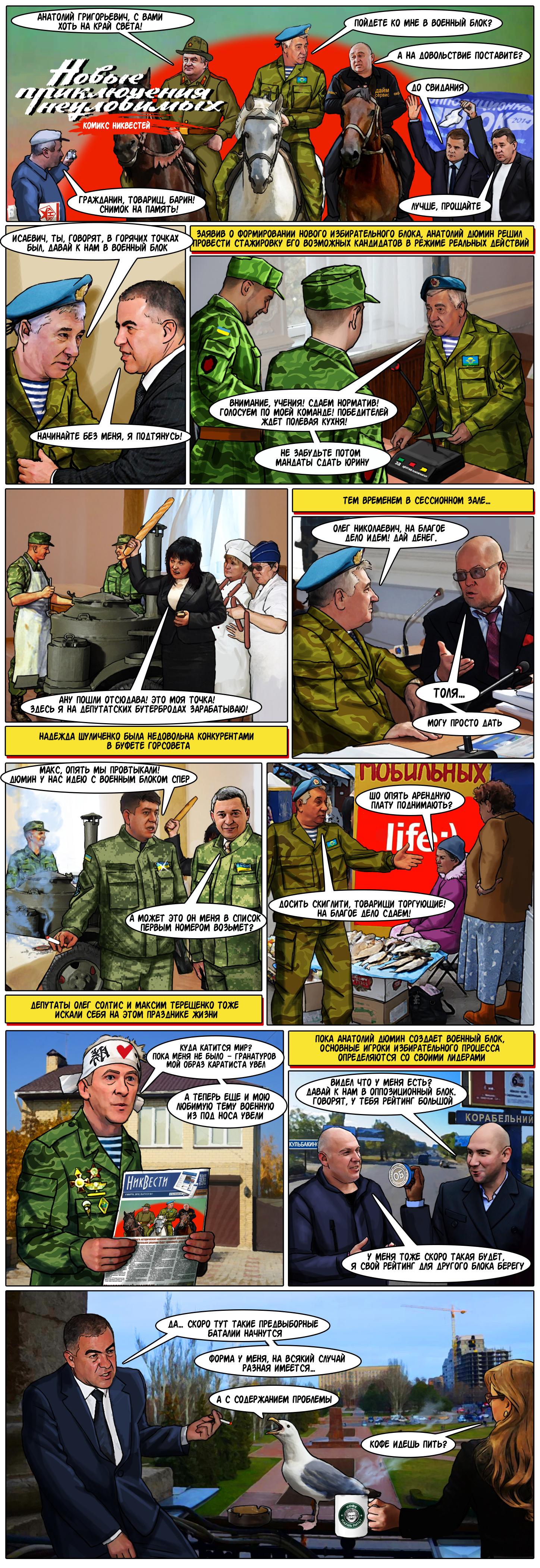 Новый комикс НикВестей посвящен теме участия так называемого "Военного блока" в грядущих выборах в городской совет.