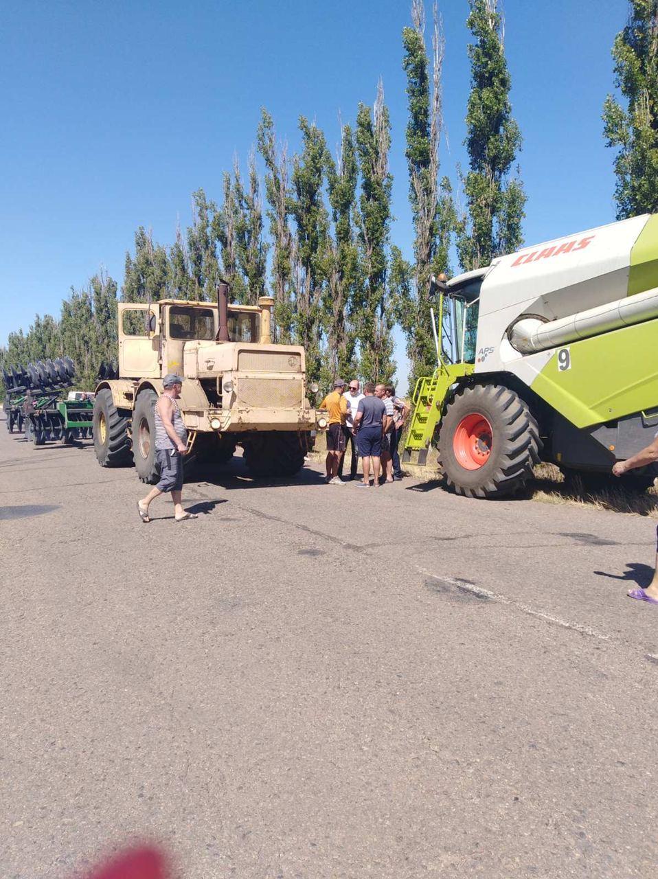 — Поступила информация, что комбайны Теника идут сюда убирать наши поля. Через полчаса люди были здесь, даже пенсионеры. На трассе мы остановили два комбайна, мы их пропустили, а потом перекрыли трассу трактором. Они пока никуда не уезжают, — рассказала сотрудница госпредприятия.