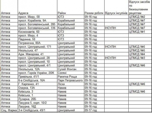 11:44 В Николаеве в понедельник, 28 февраля, работают 26 аптек, в трех из них можно получить инсулин. Список работающих аптечных пунктов опубликовал в Telegram мэр города Александр Сенкевич.