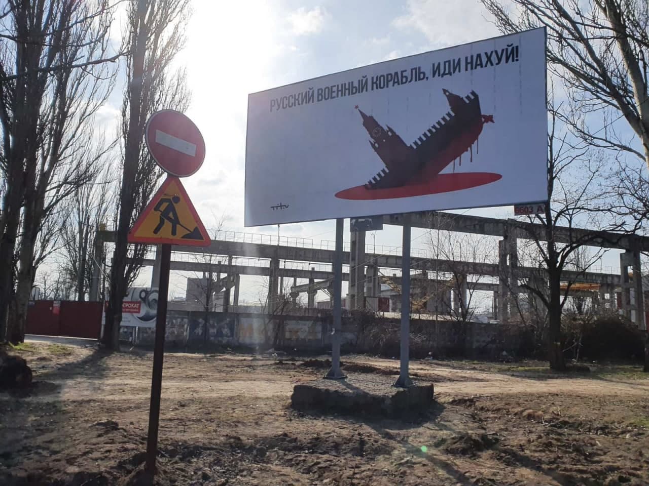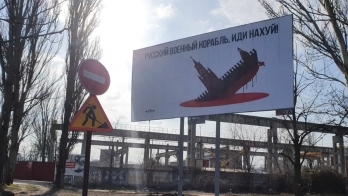 14:50 Днем 28 февраля на улицах Николаева начинают появляться рекламные щиты с надписью «Русский военный корабль, иди на**й».