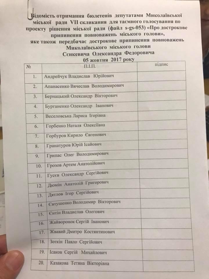 До этого депутаты Николаевского городского совета признали неудовлетворительной работу мэра Николаева Александра Сенкевича, а также работу исполнительных органов власти и заместителей городского головы.