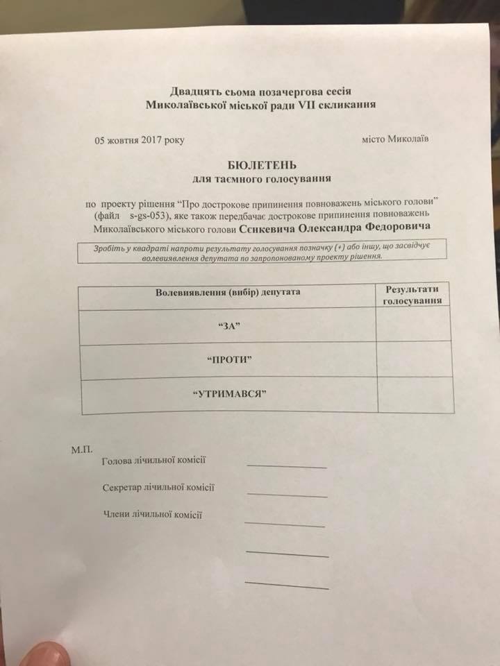 Мэру Николаева Сенкевичу объявлено недоверие: «За» 42 из 54 депутатов