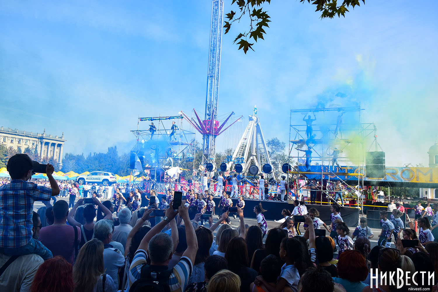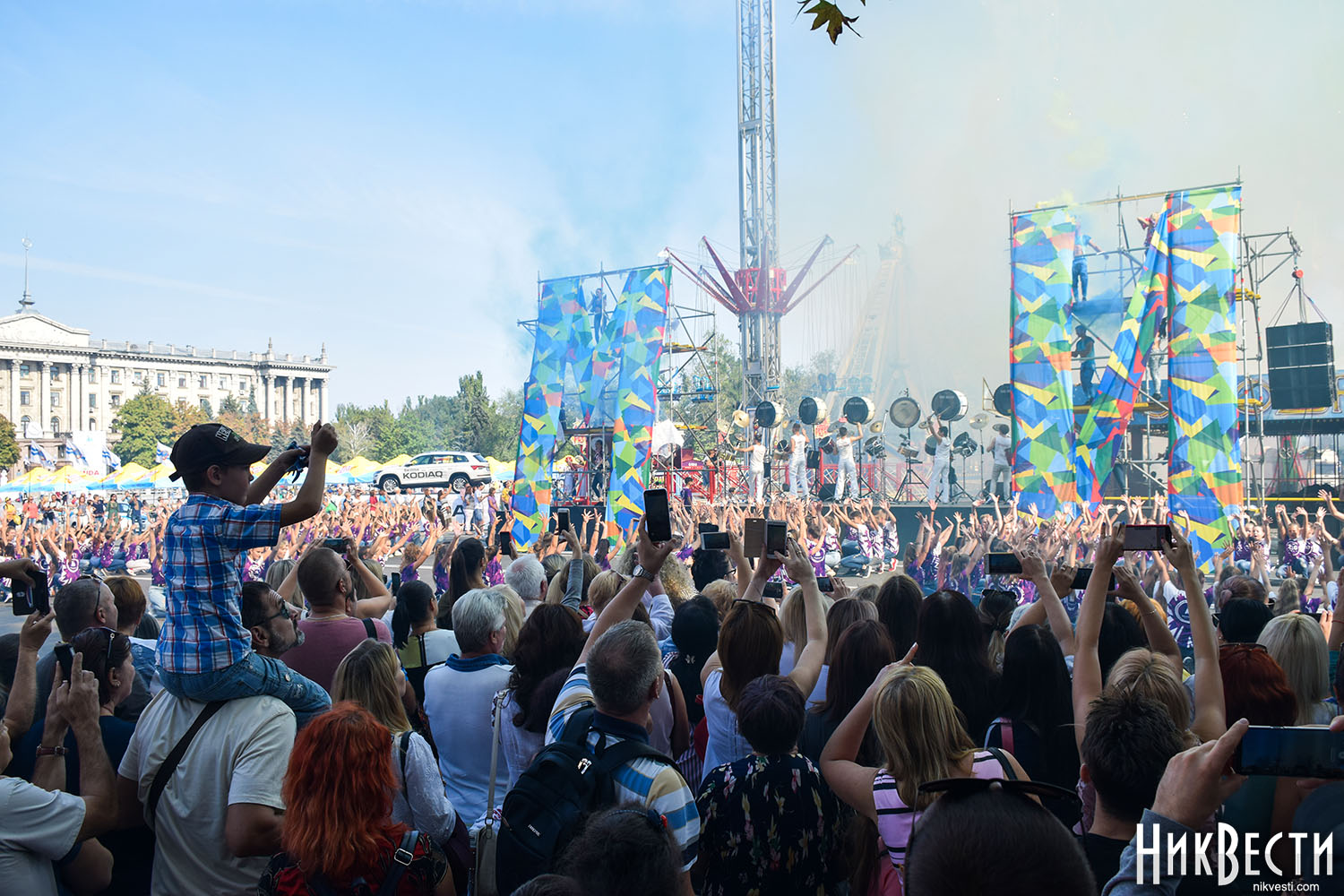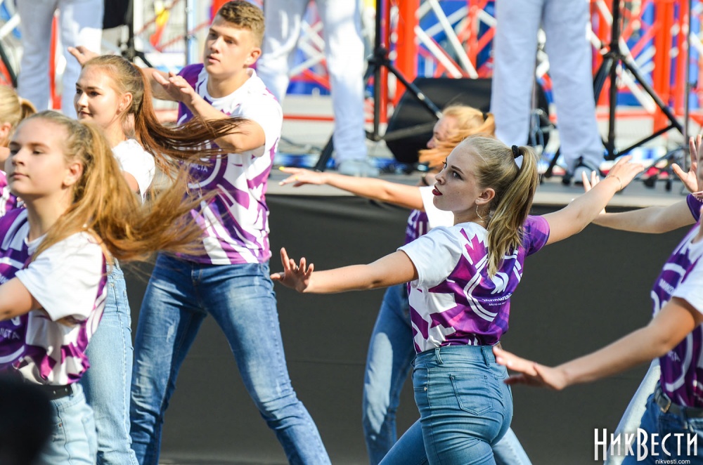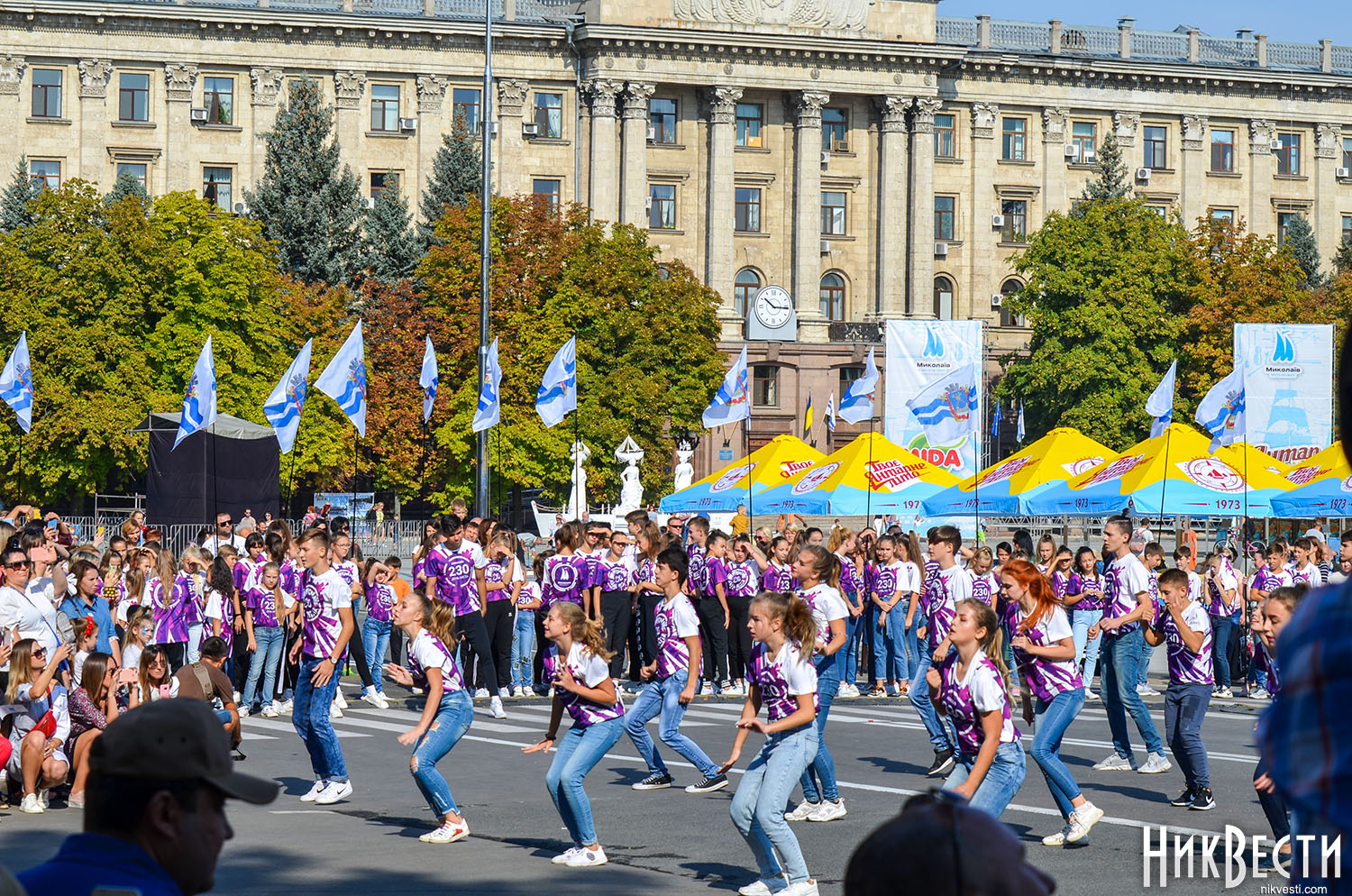 Официальное празднование началось с масштабного танцевального шоу на Соборной площади, а также парада, в котором приняли участие представители бизнеса, учебных заведений города, творческие коллективы, спортсмены, учреждения здравоохранения и другие, - передает корреспондент НикВести.