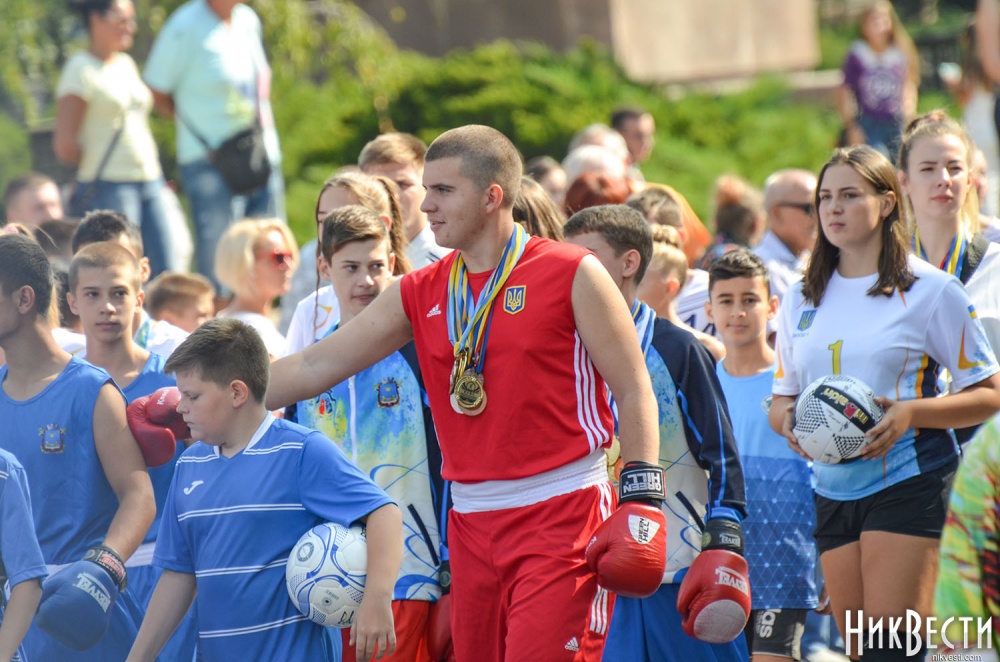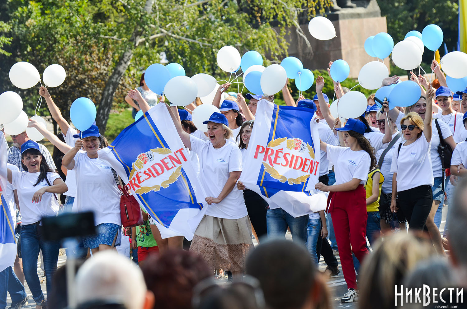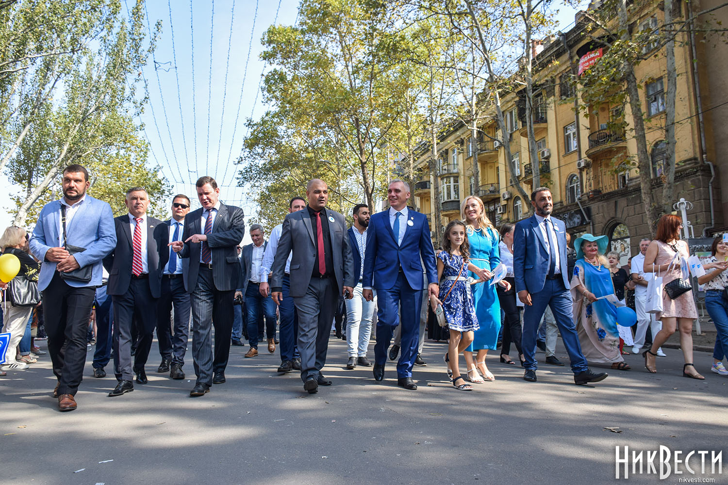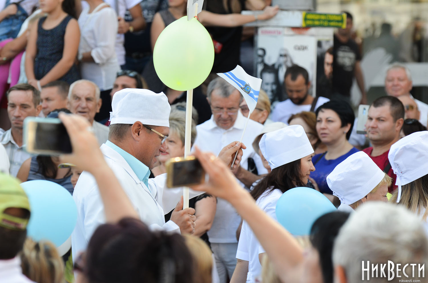 Официальное празднование началось с масштабного танцевального шоу на Соборной площади, а также парада, в котором приняли участие представители бизнеса, учебных заведений города, творческие коллективы, спортсмены, учреждения здравоохранения и другие, - передает корреспондент НикВести.