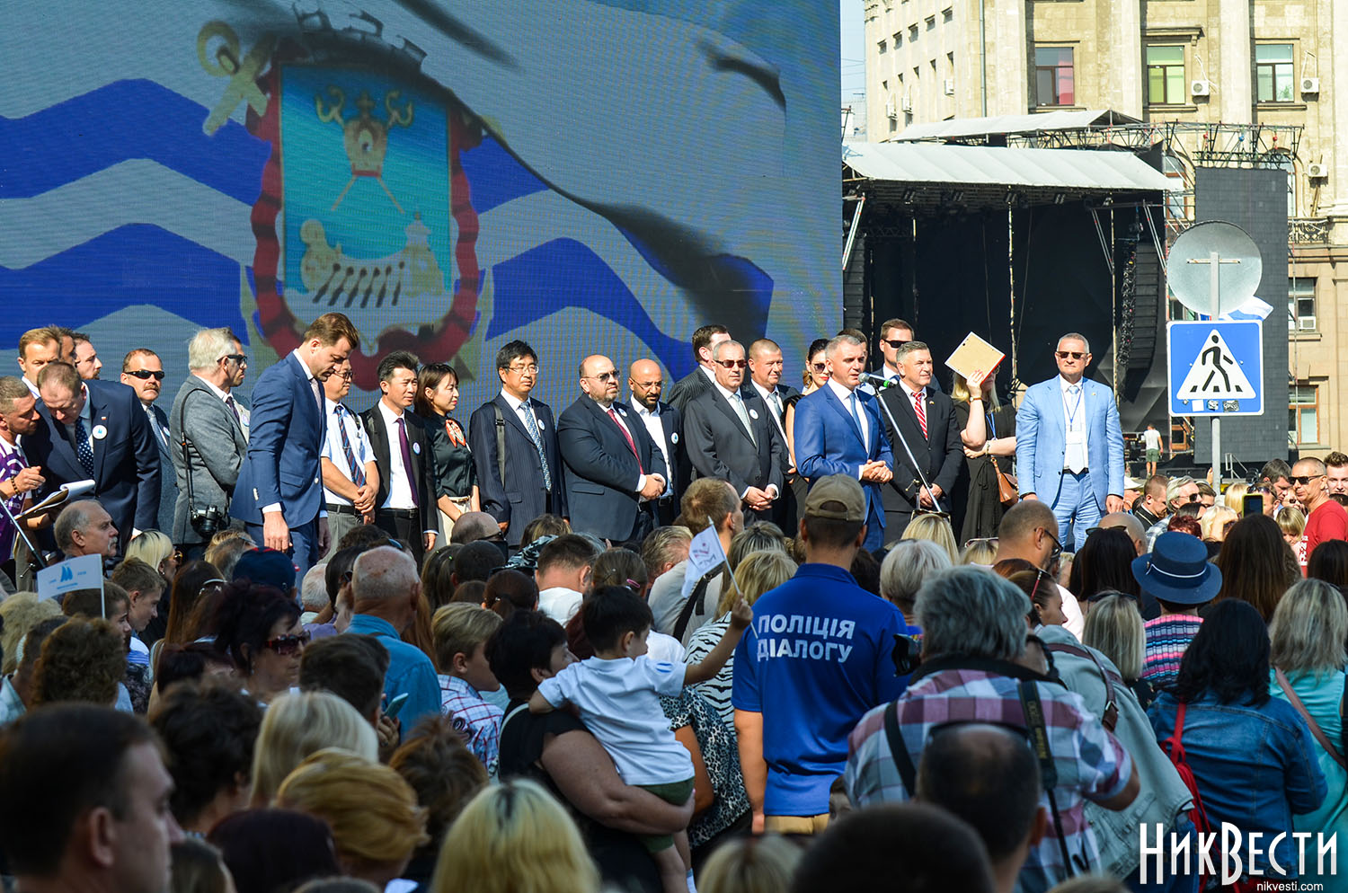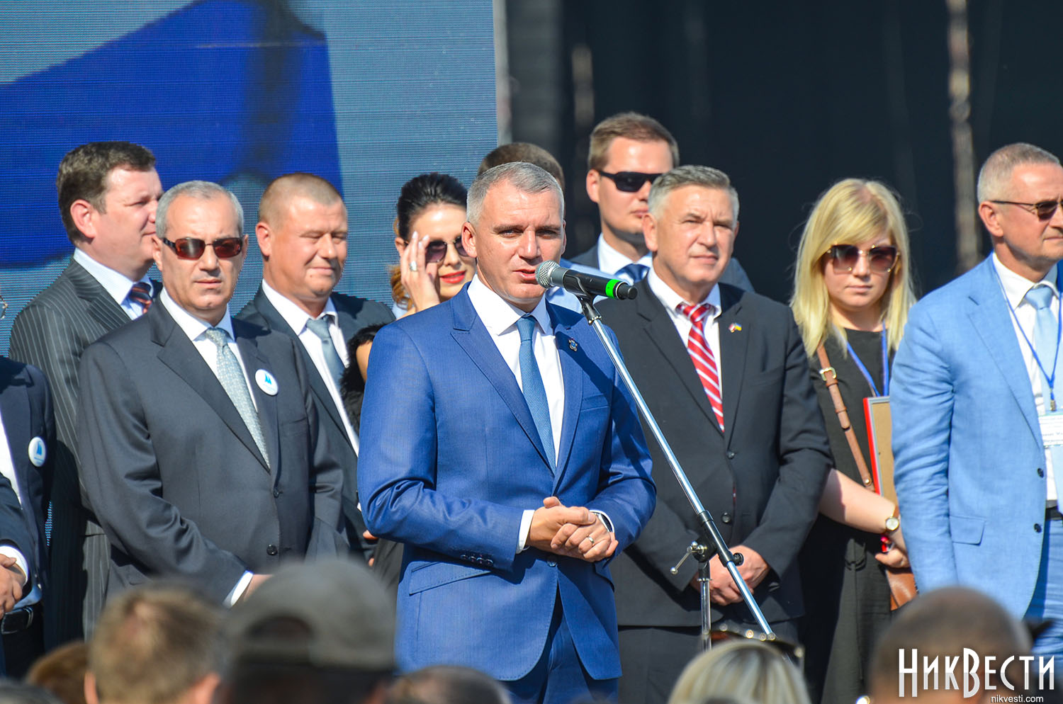 — Николаев какое-то время был закрытым городом, поэтому мы открываемся городу! Николаеву сегодня 230 лет! Много это или нет - никто не знает. Для одного человека это слишком много, а для целого города - он вообще практически ребенок. Он молодой, как эти дети, которые сегодня с нами начинали этот праздник. Мне понравилось, с чего начался наш праздник: мы все мечтаем, мечтаем, что Николаев станет успешным, классным городом. Но иногда забываем просто делать его таким вместе. Николаев станет классным городом, когда каждый из нас поймет, что Николаев - это не деревья, не асфальт - это мы, николаевцы. И вместе мы сможем сделать наш город лучше, успешнее, бочаге.  Я уверен, у Николаева хорошее будущее, потому что я смотрю на вас и понимаю, что такие красивые люди не могут его не сделать лучше. Николаев - это Мы! Поздравляю вас, поздравляю нас с Днем города! Поздравляю тебя, Николаев! - сказал мэр Николаева Александр Сенкевич, выступая с приветственным словом перед горожанами.
