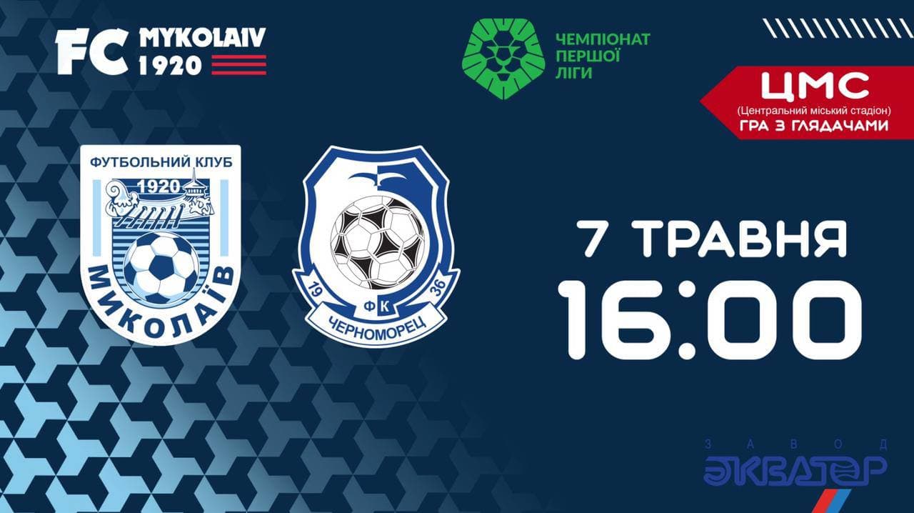 Начало центрального матча 25-го тура МФК «Николаев» — «Черноморец» запланировано на 16:00. Билеты можно купить онлайн в Досуговой кассе. Обязательные условия посещения игры — использование средств индивидуальной защиты и соблюдение санитарной дистанции во время просмотра поединка.