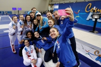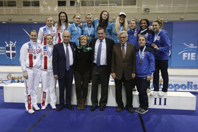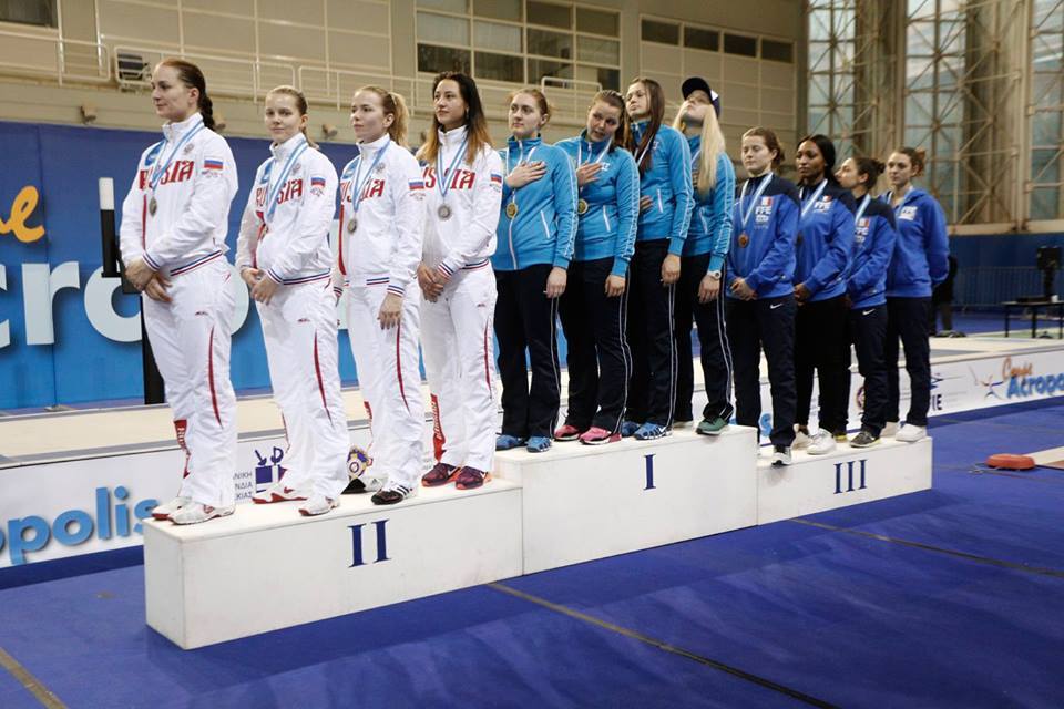 Женская сборная Украины по фехтованию на саблях победила в командном первенстве на этапе Кубка мира в Афинах. В финале украинки одержали победу над сборной России со счетом 45:44.